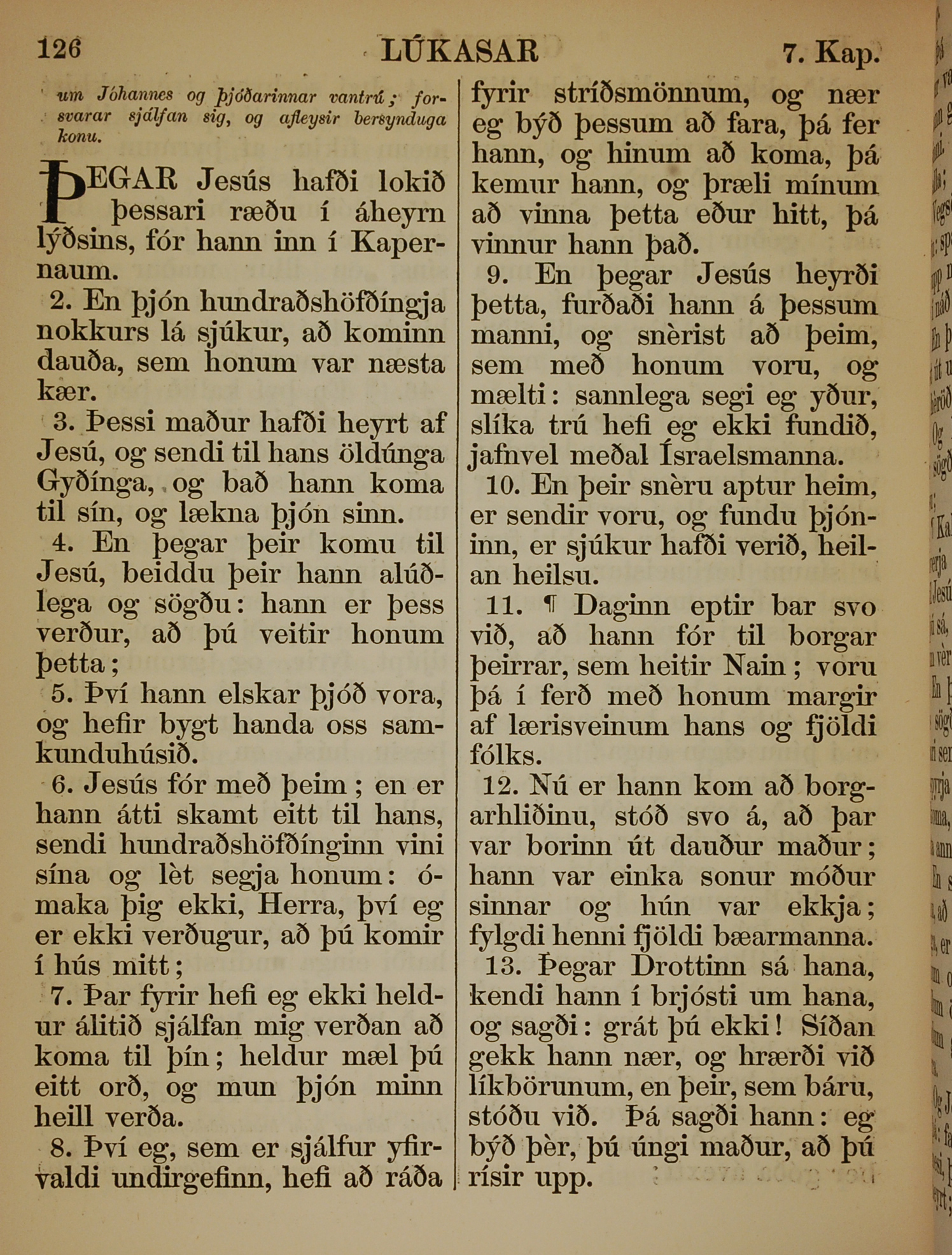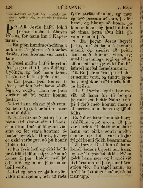 1863年冰岛语新约全书 路加福音 7 章 1 节到 7 章 14 节