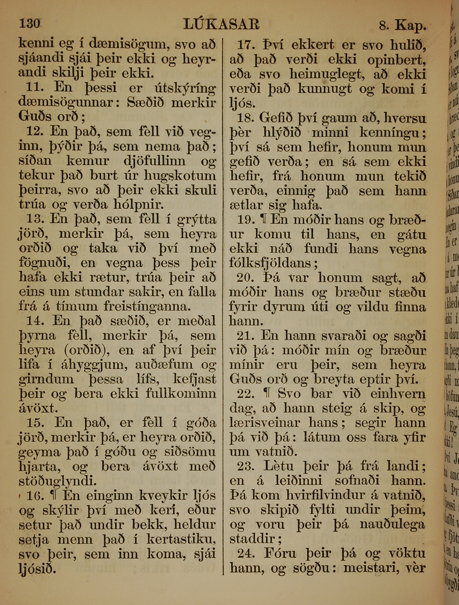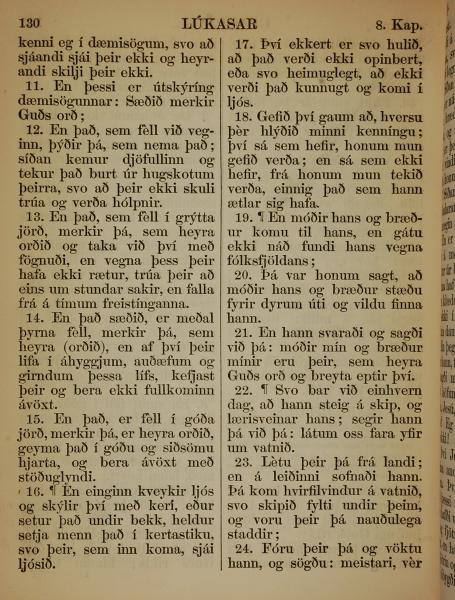 1863年冰岛语新约全书 路加福音 8 章 11 节到 8 章 24 节