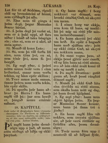 1863年冰岛语新约全书 路加福音 17 章 30 节到 18 章 10 节
