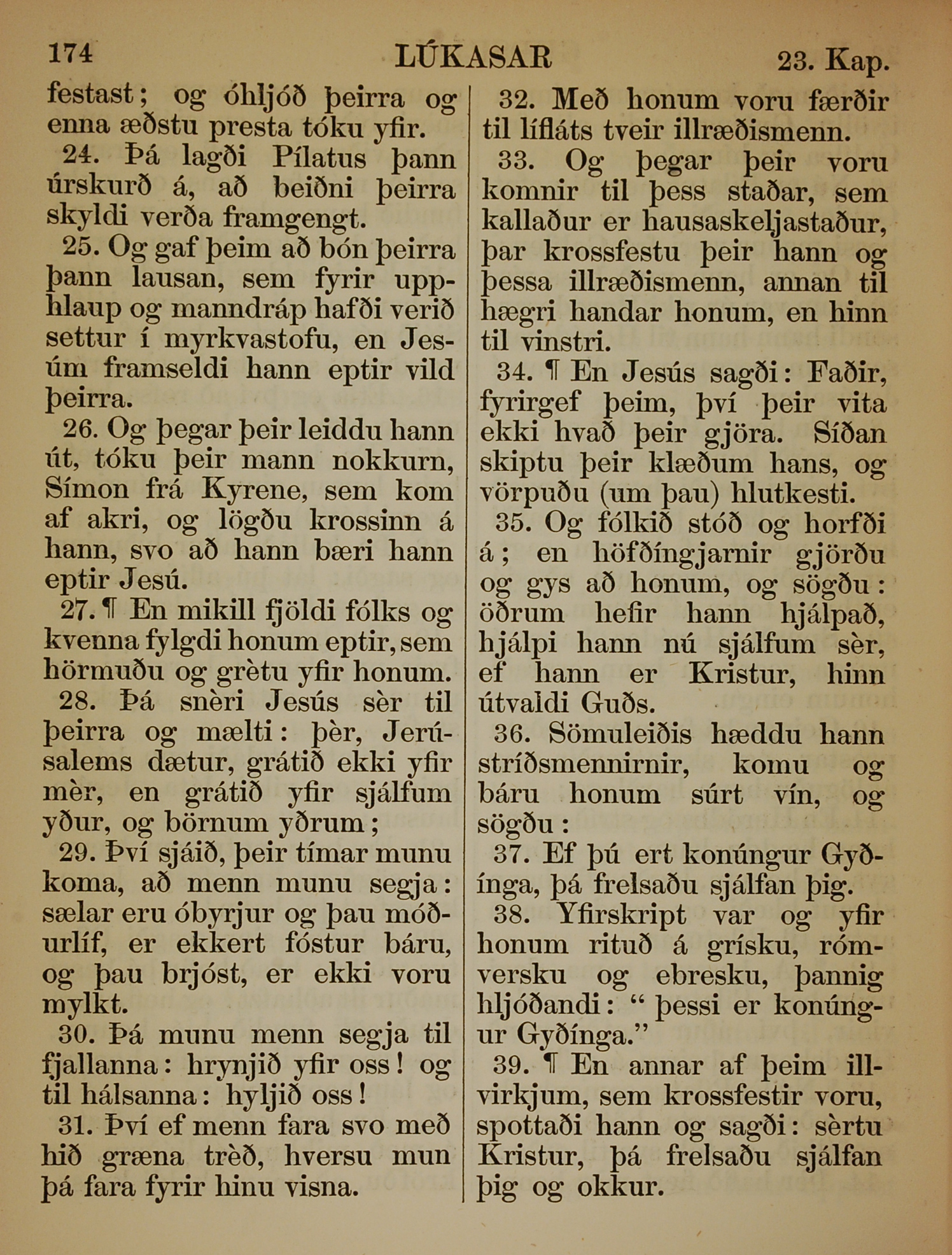 1863年冰岛语新约全书 路加福音 23 章 24 节到 23 章 39 节