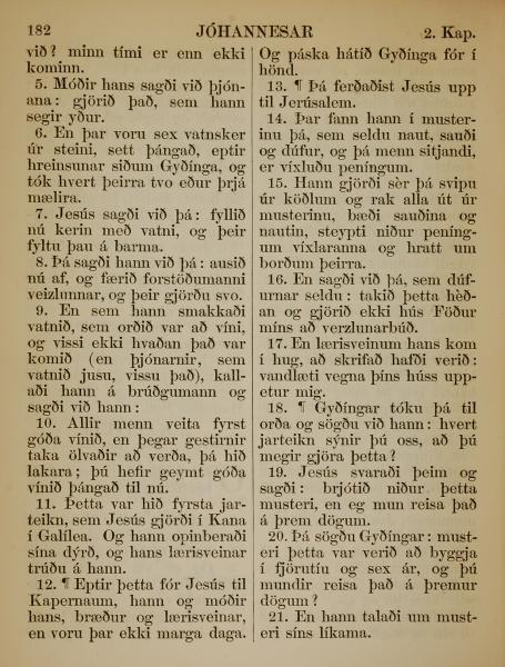 1863年冰岛语新约全书 约翰福音 2 章 5 节到 2 章 21 节