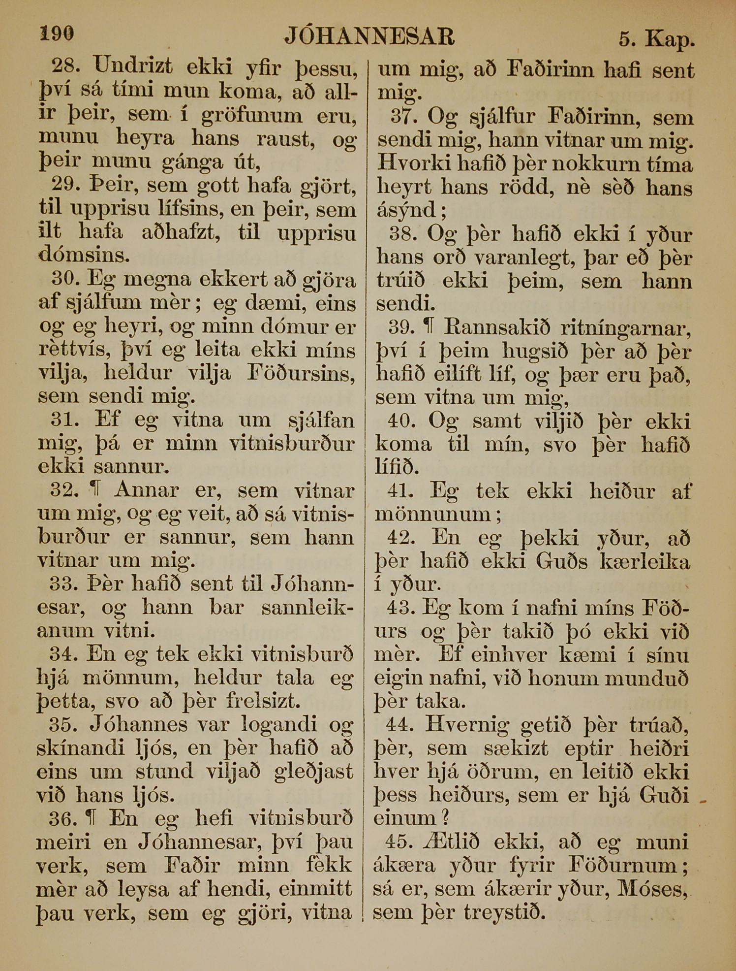 1863年冰岛语新约全书 约翰福音 5 章 28 节到 5 章 45 节