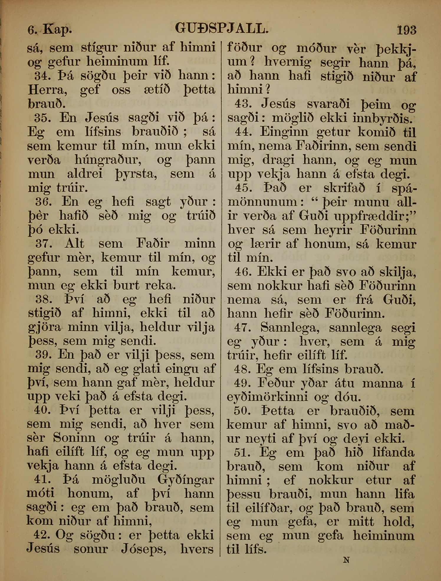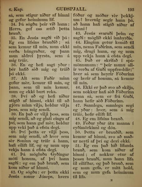 1863年冰岛语新约全书 约翰福音 6 章 34 节到 6 章 51 节
