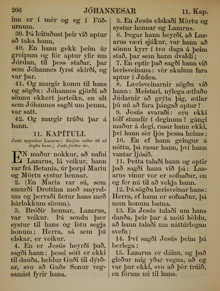 1863年冰岛语新约全书 约翰福音 10 章 39 节到 11 章 15 节