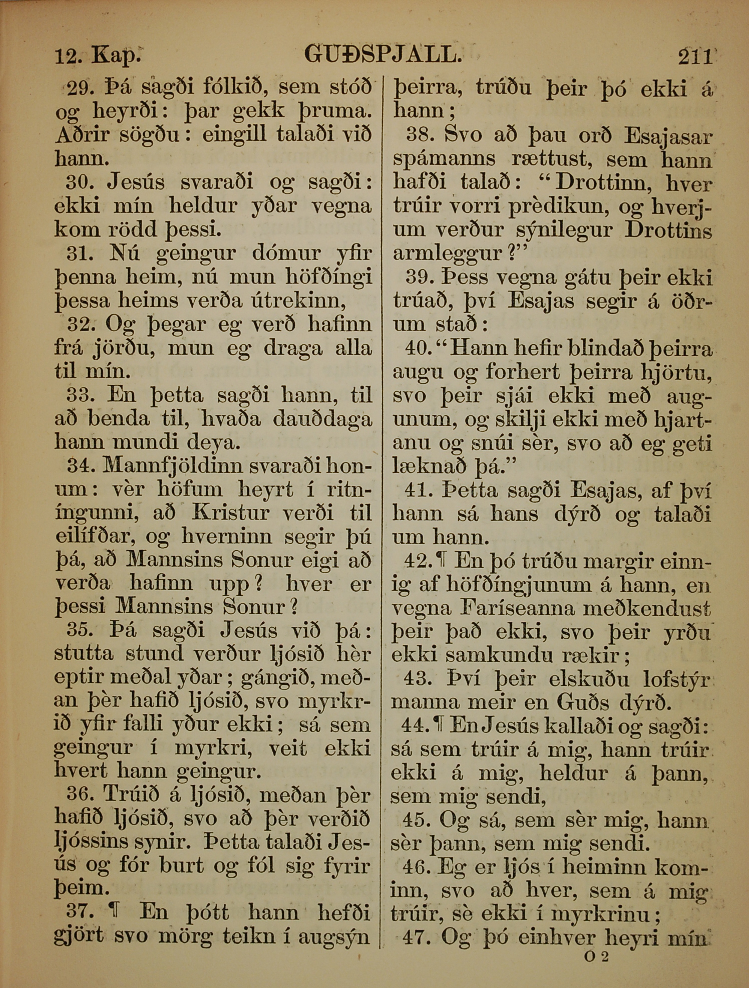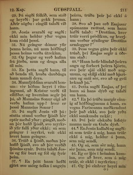 1863年冰岛语新约全书 约翰福音 12 章 29 节到 12 章 47 节