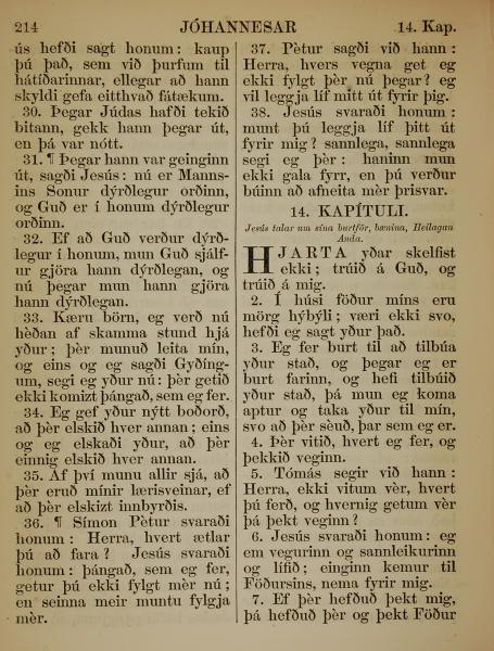 1863年冰岛语新约全书 约翰福音 13 章 30 节到 14 章 7 节