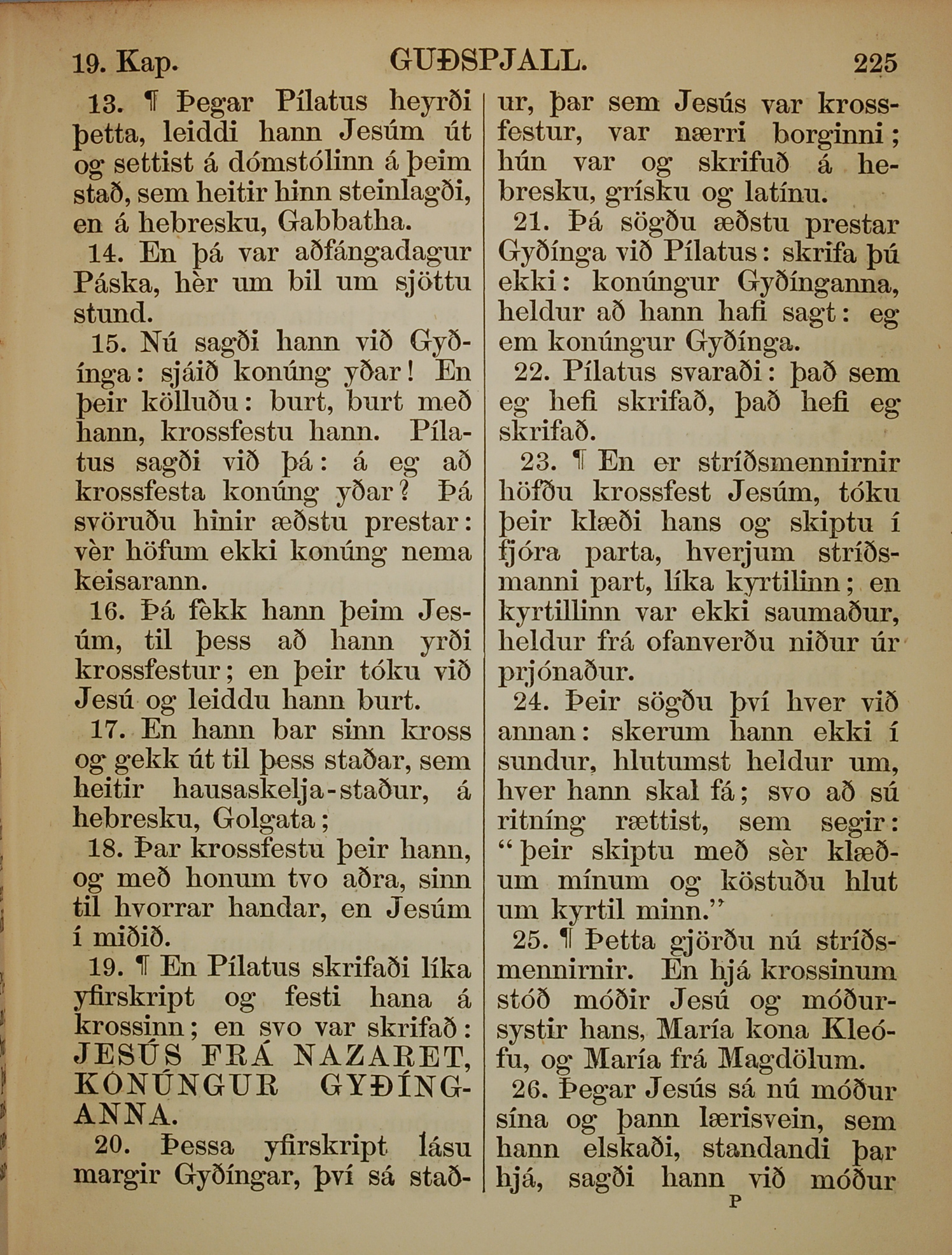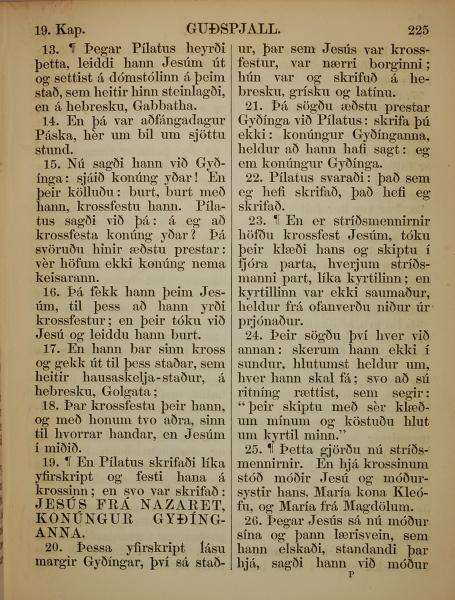 1863年冰岛语新约全书 约翰福音 19 章 13 节到 19 章 26 节