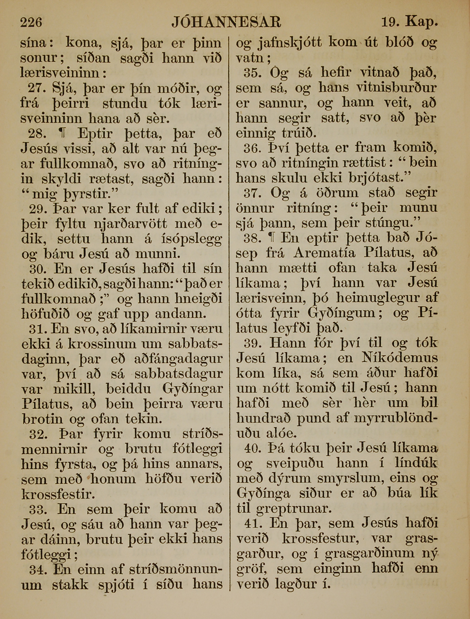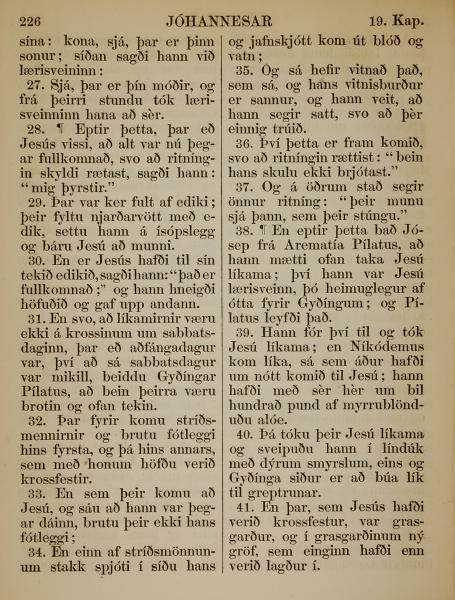 1863年冰岛语新约全书 约翰福音 19 章 27 节到 19 章 41 节