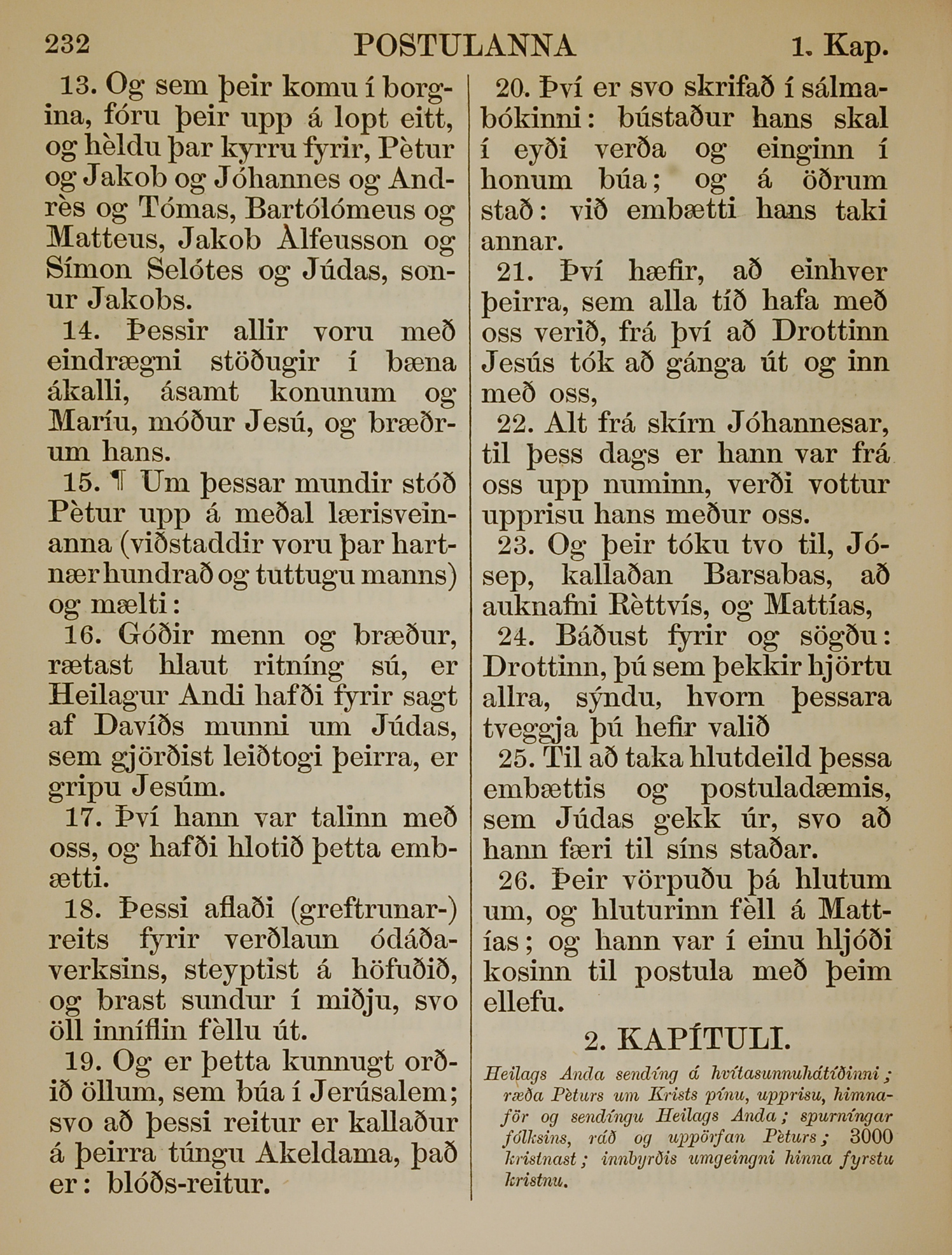 1863年冰岛语新约全书 使徒行传 1 章 13 节到 1 章 26 节
