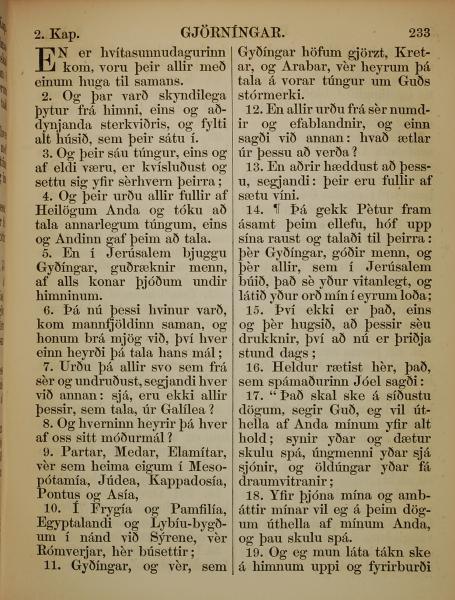 1863年冰岛语新约全书 使徒行传 2 章 1 节到 2 章 19 节