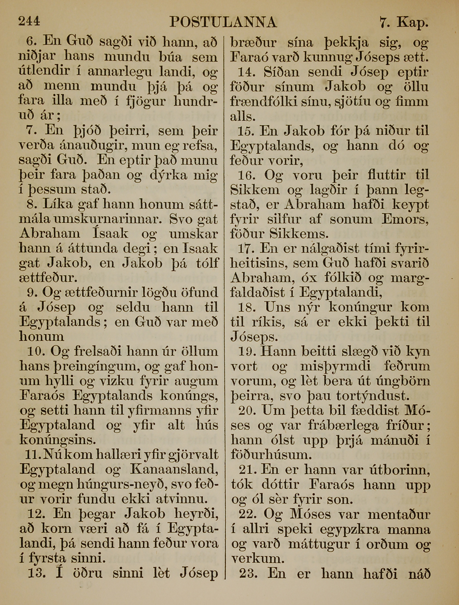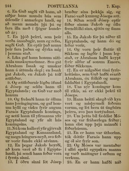 1863年冰岛语新约全书 使徒行传 7 章 6 节到 7 章 23 节