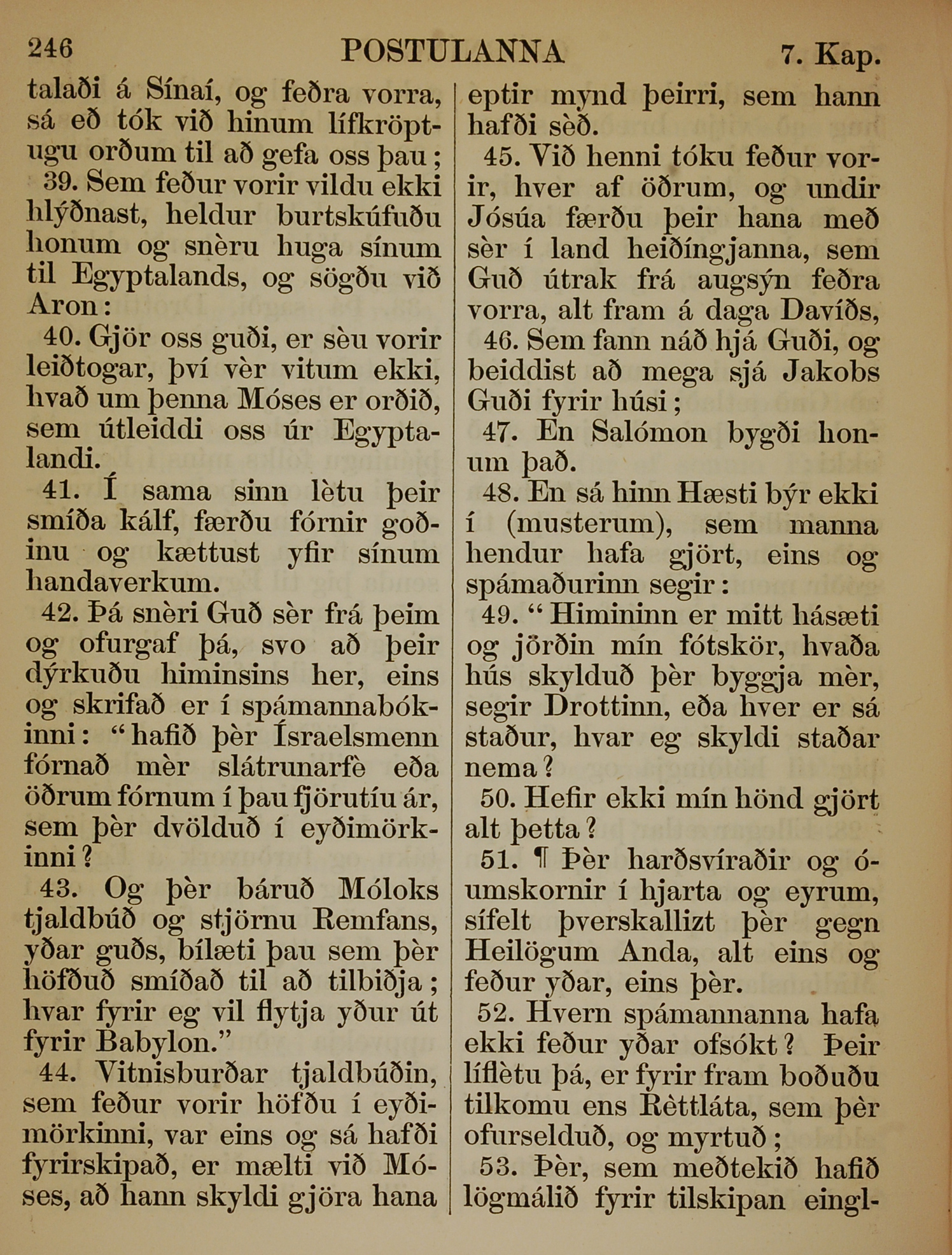 1863年冰岛语新约全书 使徒行传 7 章 39 节到 7 章 53 节