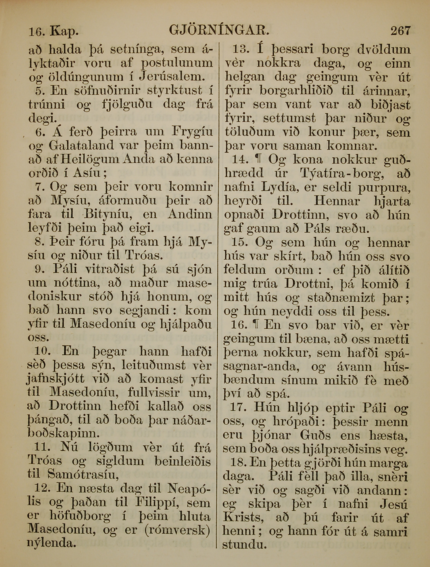 1863年冰岛语新约全书 使徒行传 16 章 5 节到 16 章 18 节