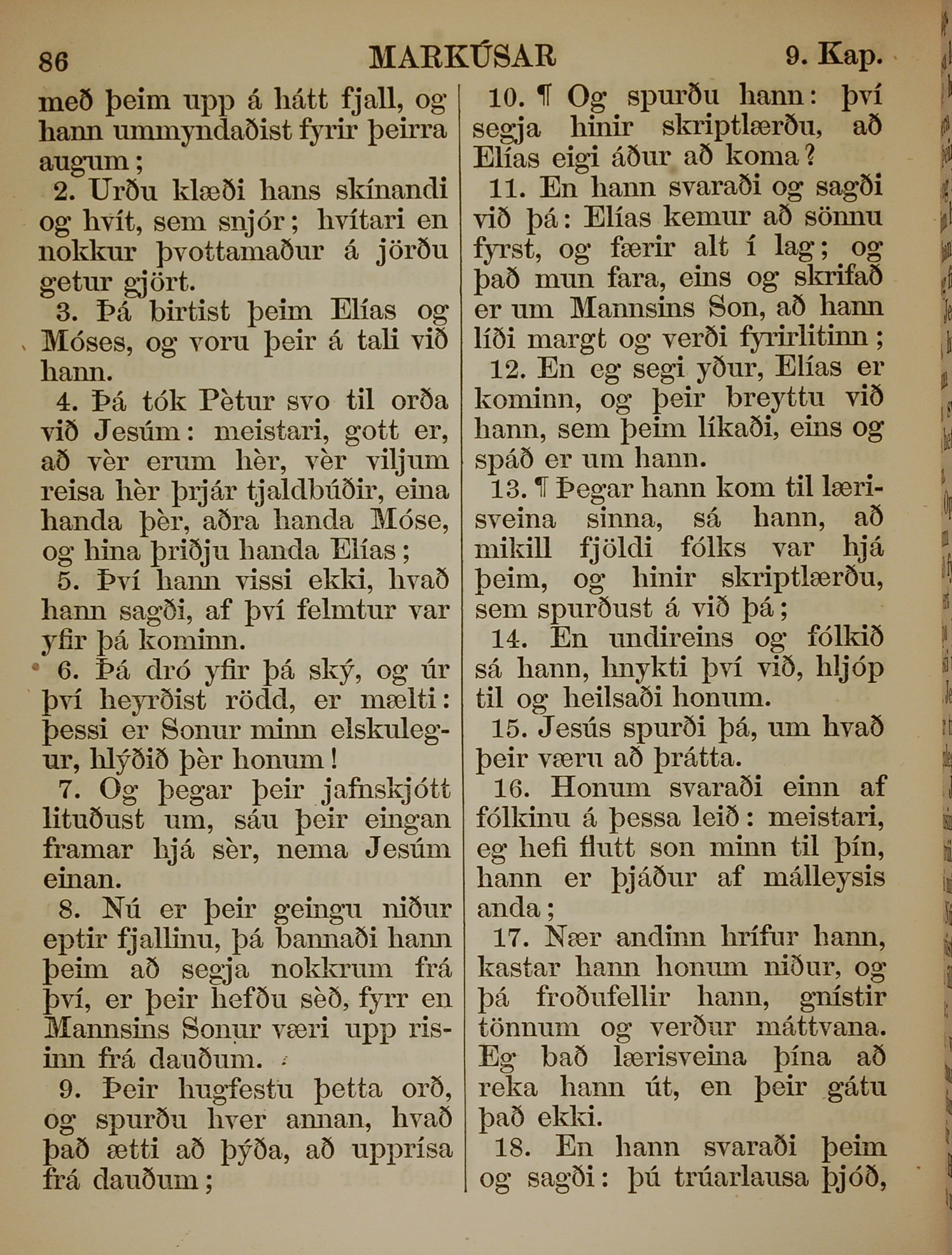1863年冰岛语新约全书 马可福音 9 章 2 节到 9 章 18 节