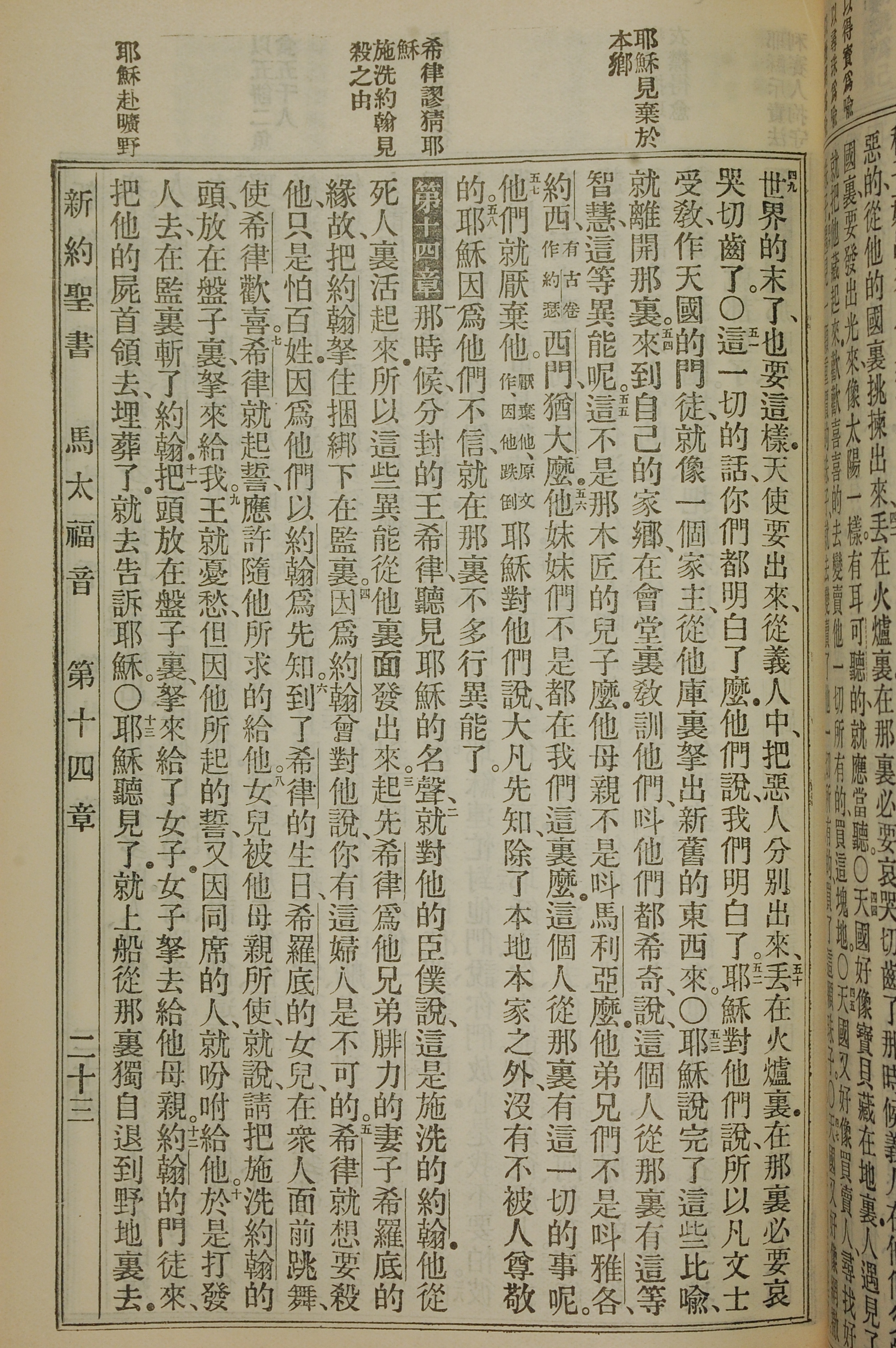 1912年新旧约圣书 马太福音 13 章 49 节到 14 章 13 节