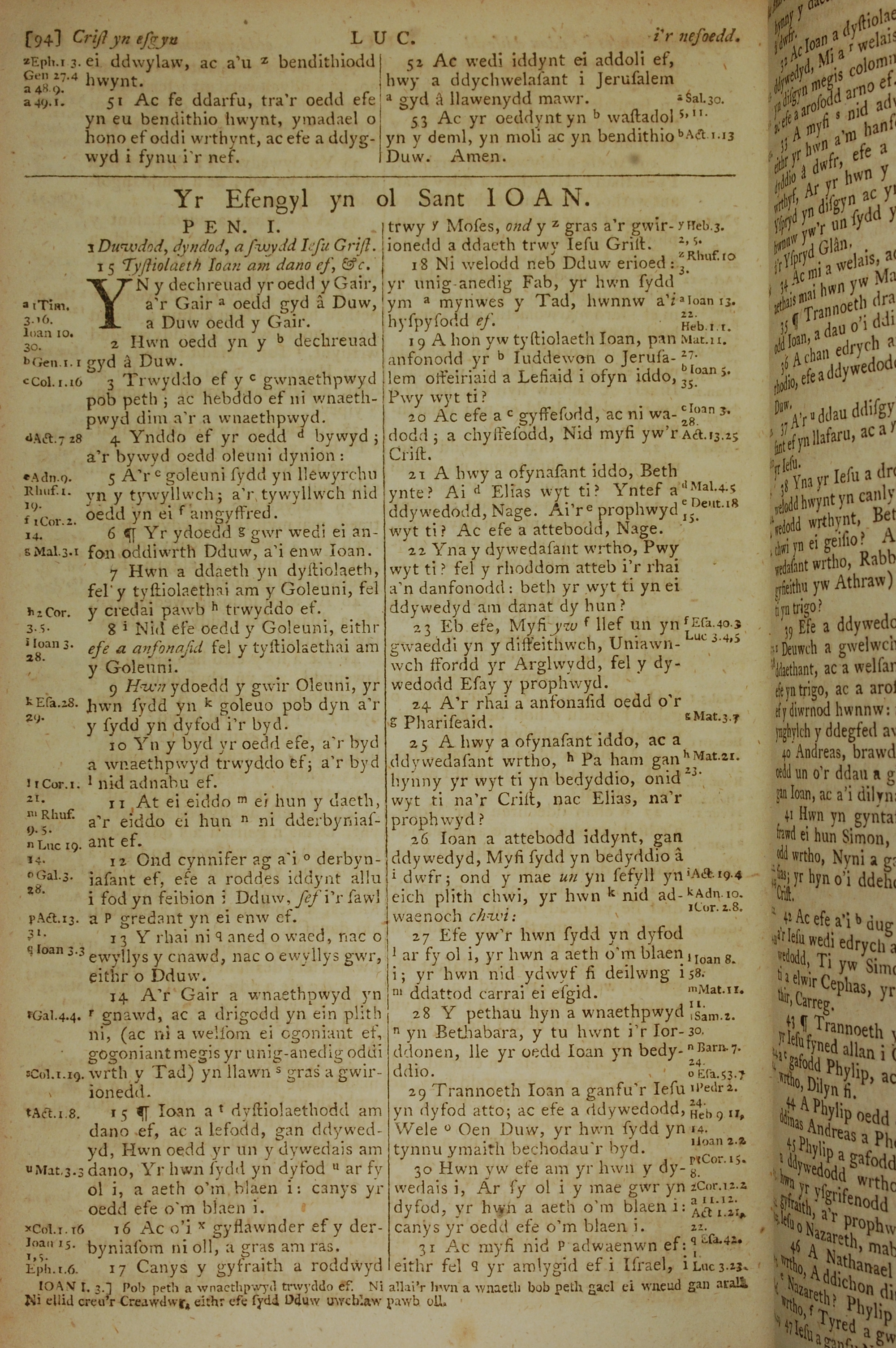 1796年威尔斯文新旧约全书 约翰福音 1 章 1 节到 1 章 31 节