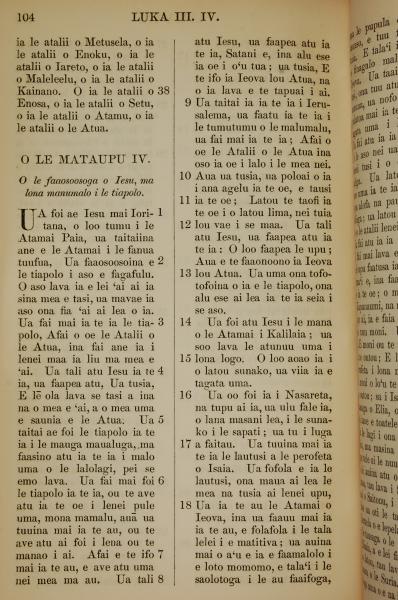 1849年萨摩亚语新约全书 路加福音 3 章 38 节到 4 章 18 节