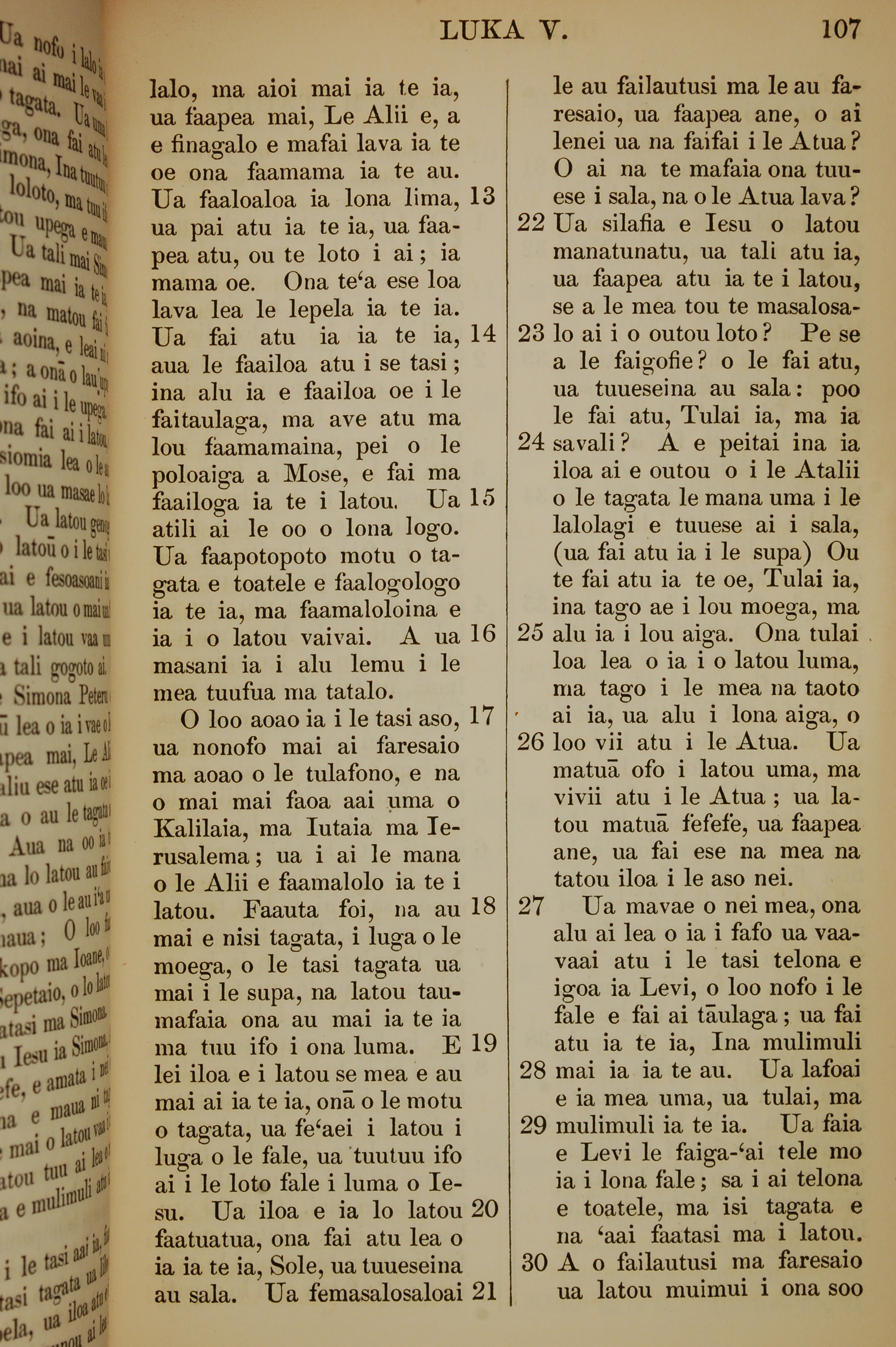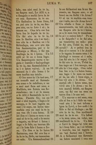 1849年萨摩亚语新约全书 路加福音 5 章 13 节到 5 章 30 节