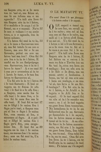 1849年萨摩亚语新约全书 路加福音 5 章 31 节到 6 章 9 节