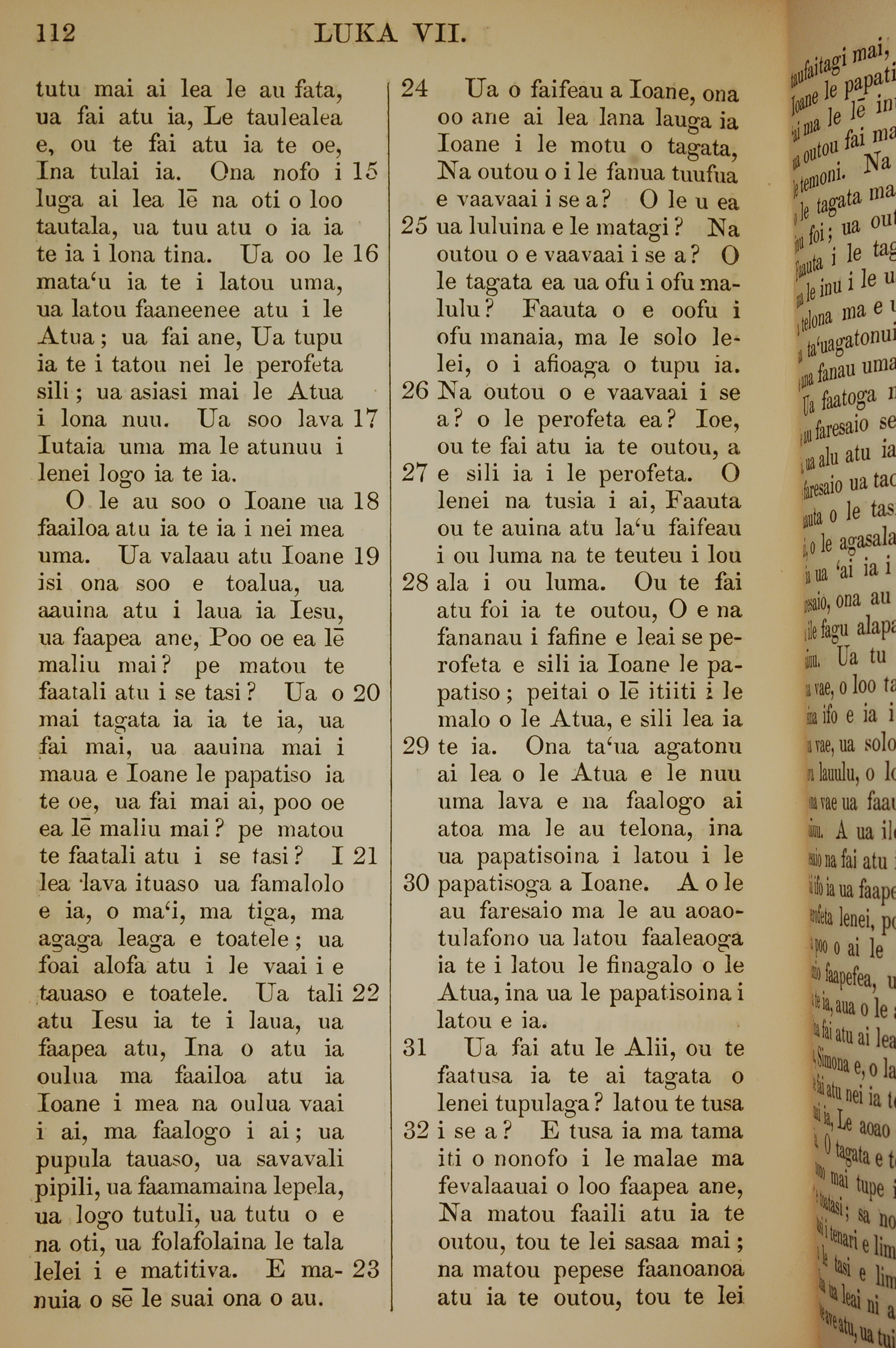 1849年萨摩亚语新约全书 路加福音 7 章 15 节到 7 章 32 节