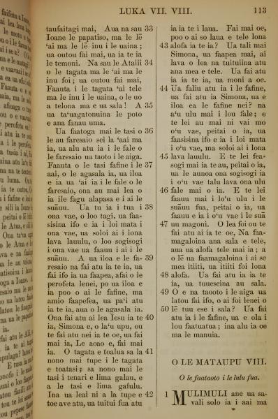 1849年萨摩亚语新约全书 路加福音 7 章 33 节到 8 章 1 节