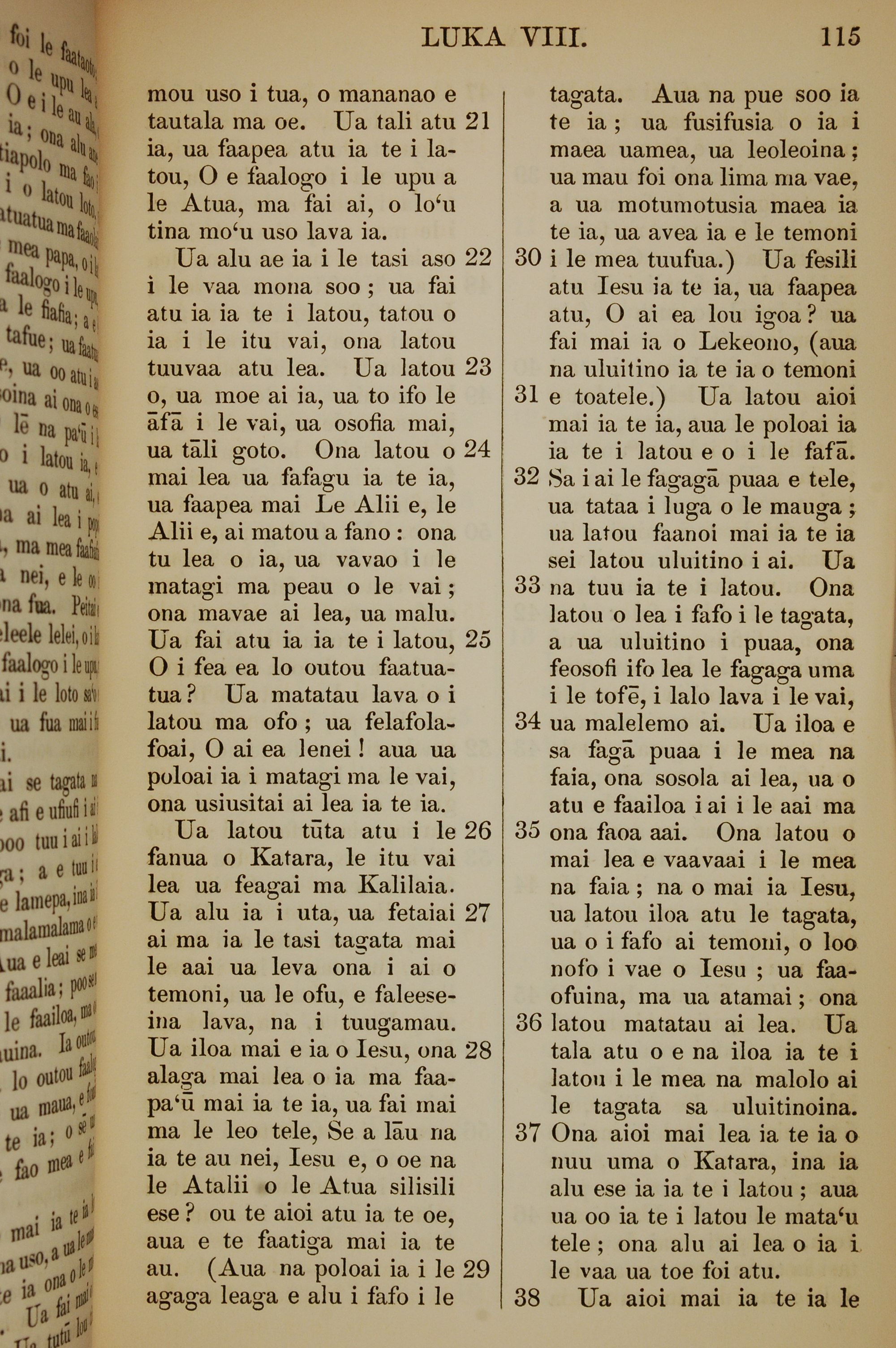 1849年萨摩亚语新约全书 路加福音 8 章 21 节到 8 章 38 节