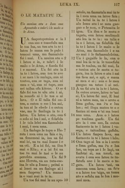 1849年萨摩亚语新约全书 路加福音 9 章 1 节到 9 章 17 节