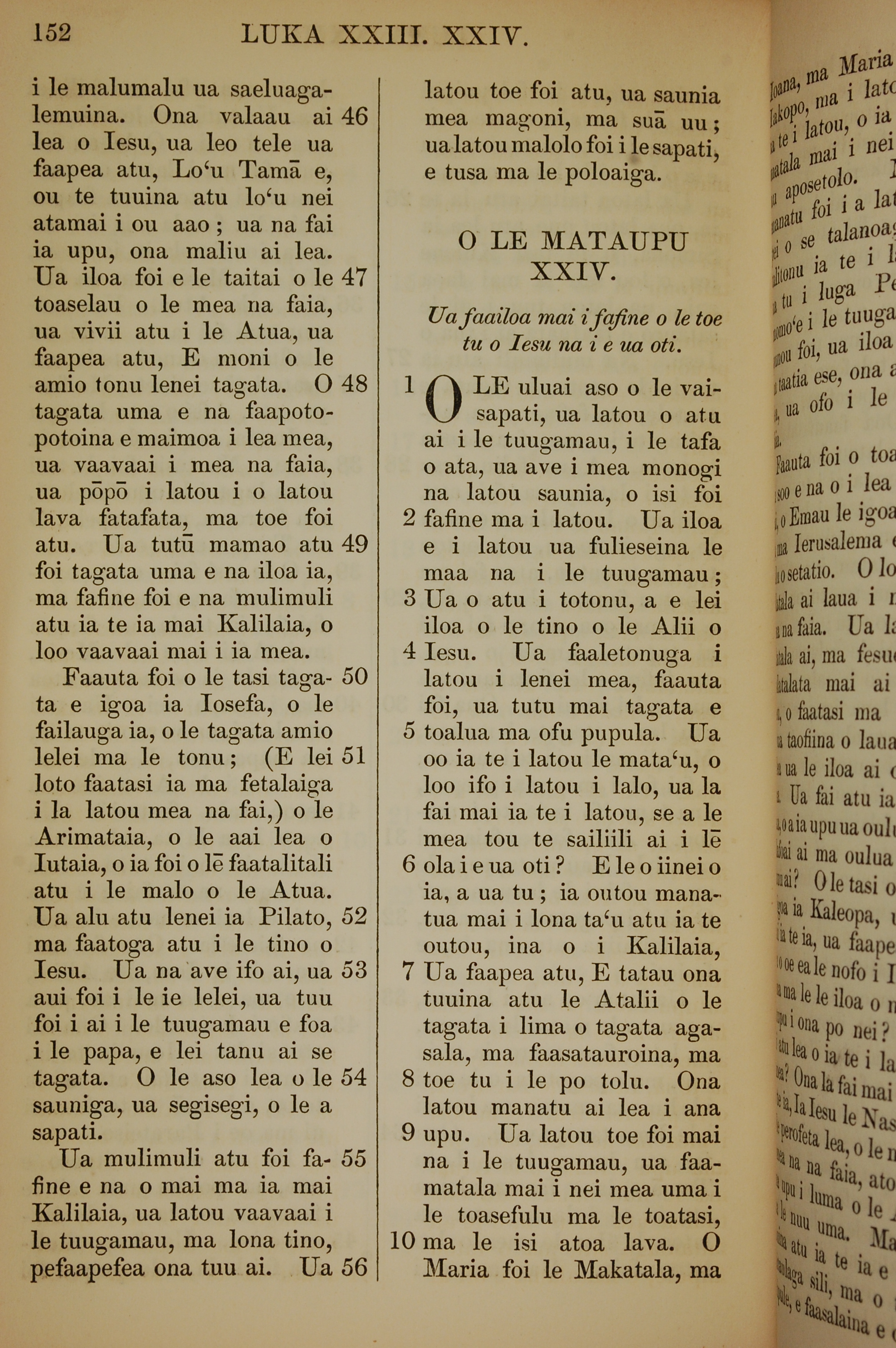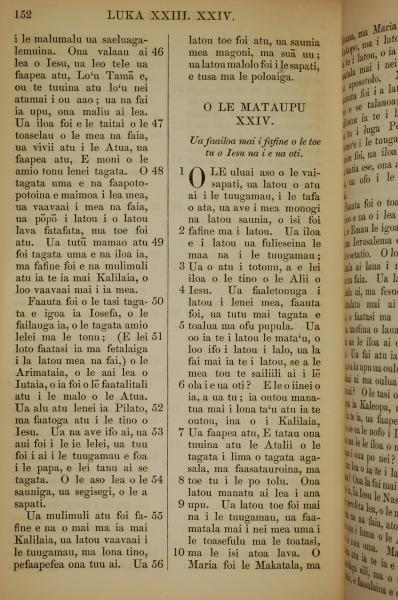 1849年萨摩亚语新约全书 路加福音 23 章 46 节到 24 章 10 节