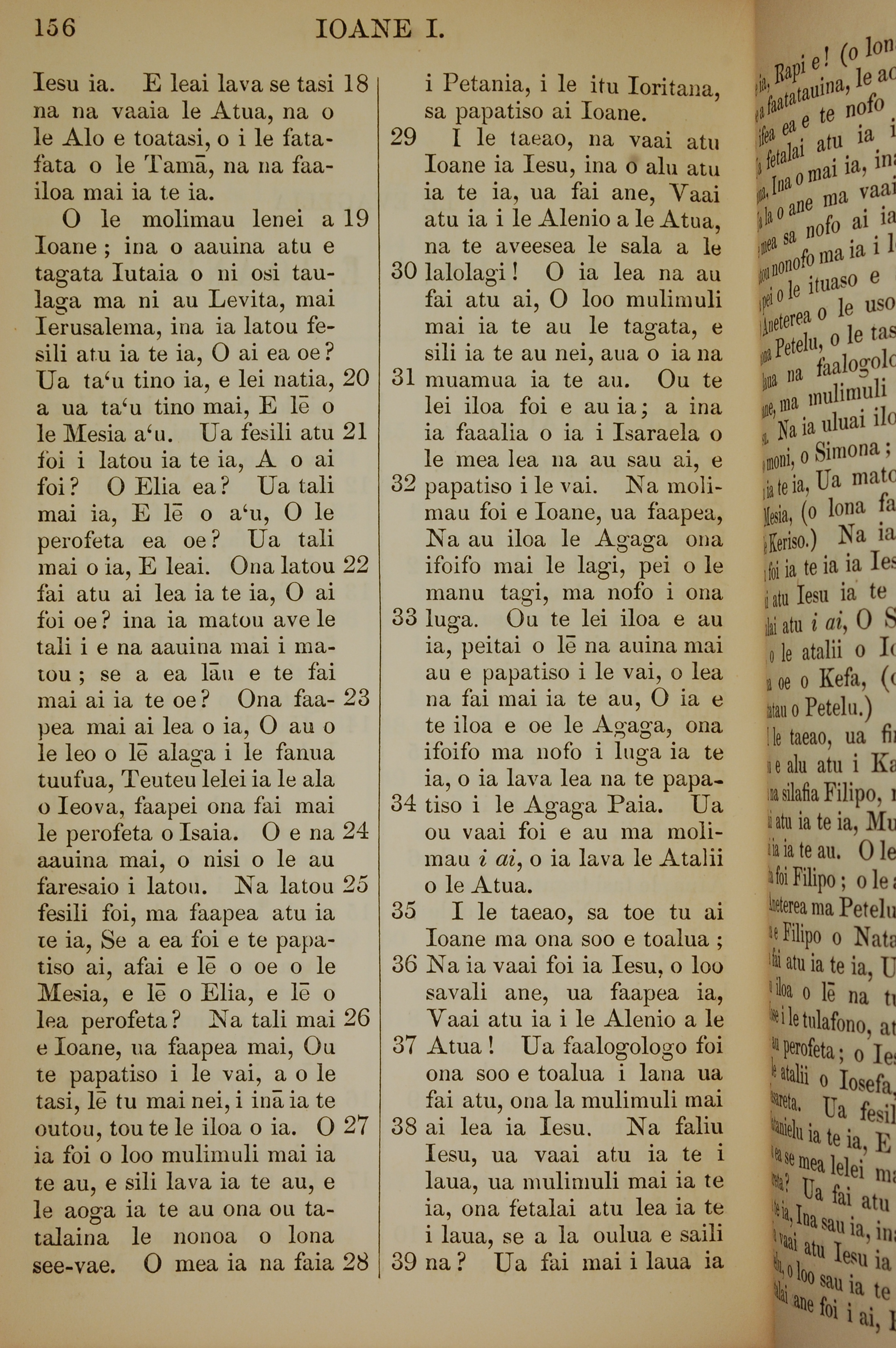 1849年萨摩亚语新约全书 约翰福音 1 章 18 节到 1 章 39 节