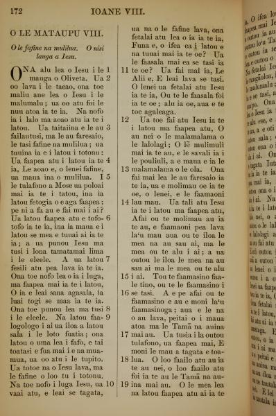 1849年萨摩亚语新约全书 约翰福音 8 章 1 节到 8 章 19 节