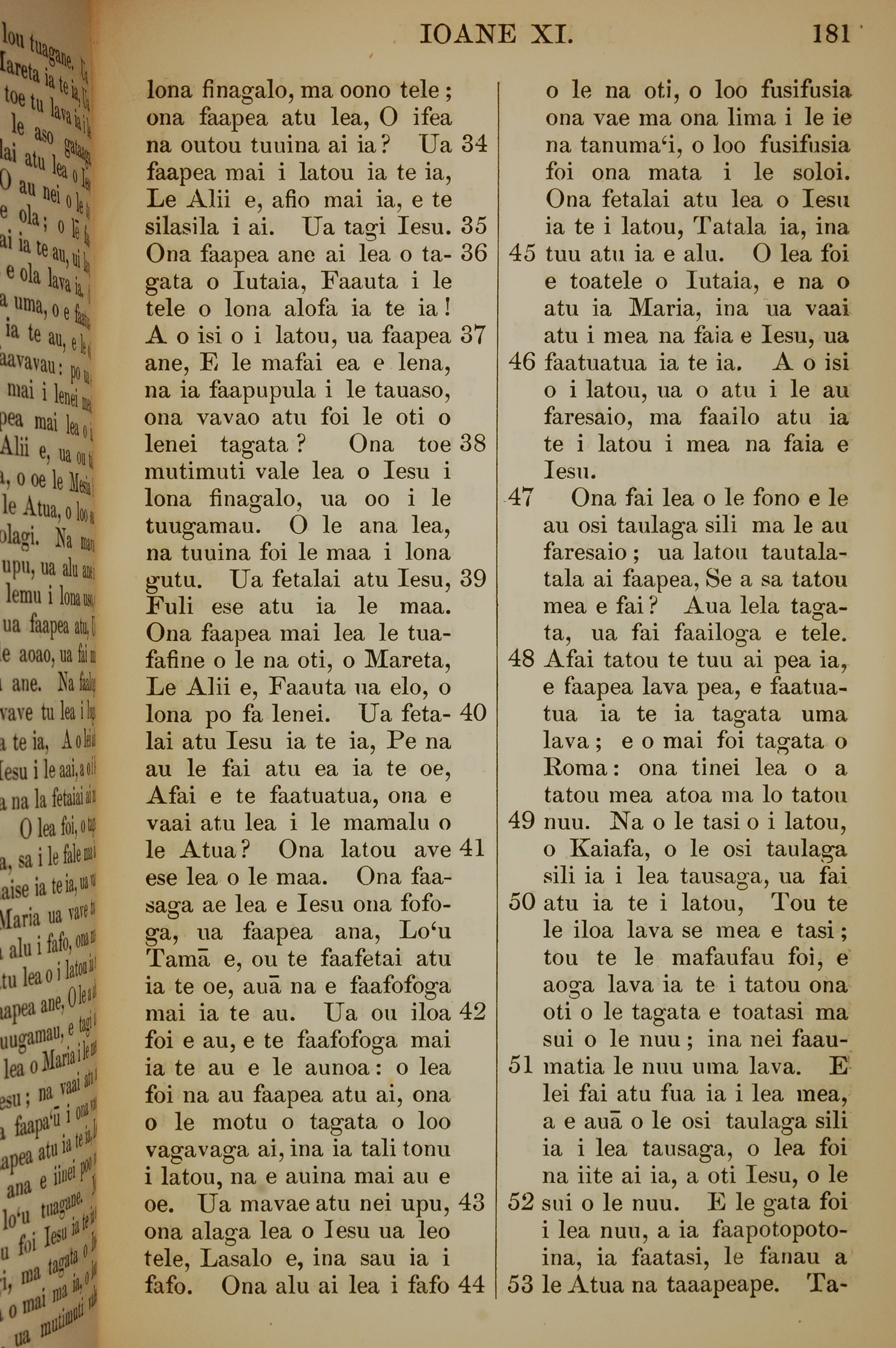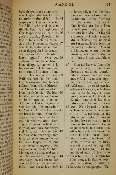 1849年萨摩亚语新约全书 约翰福音 11 章 34 节到 11 章 53 节