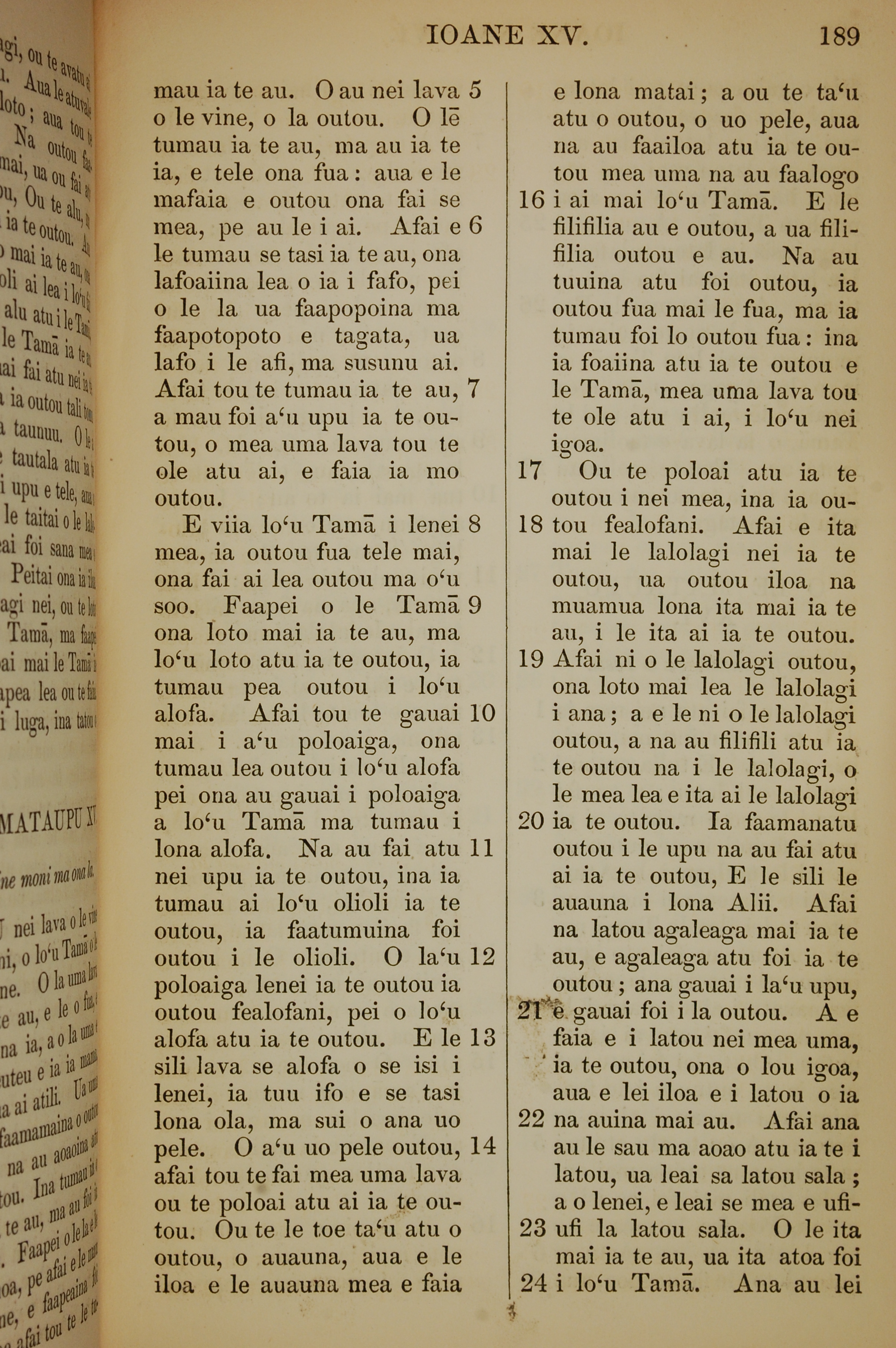 1849年萨摩亚语新约全书 约翰福音 15 章 5 节到 15 章 24 节