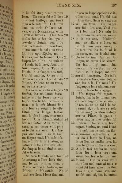 1849年萨摩亚语新约全书 约翰福音 19 章 19 节到 19 章 35 节