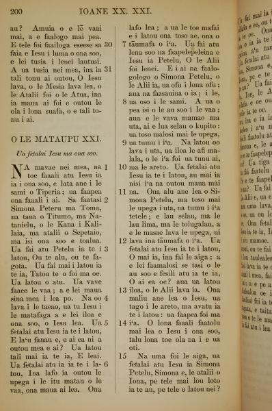 1849年萨摩亚语新约全书 约翰福音 20 章 30 节到 21 章 15 节