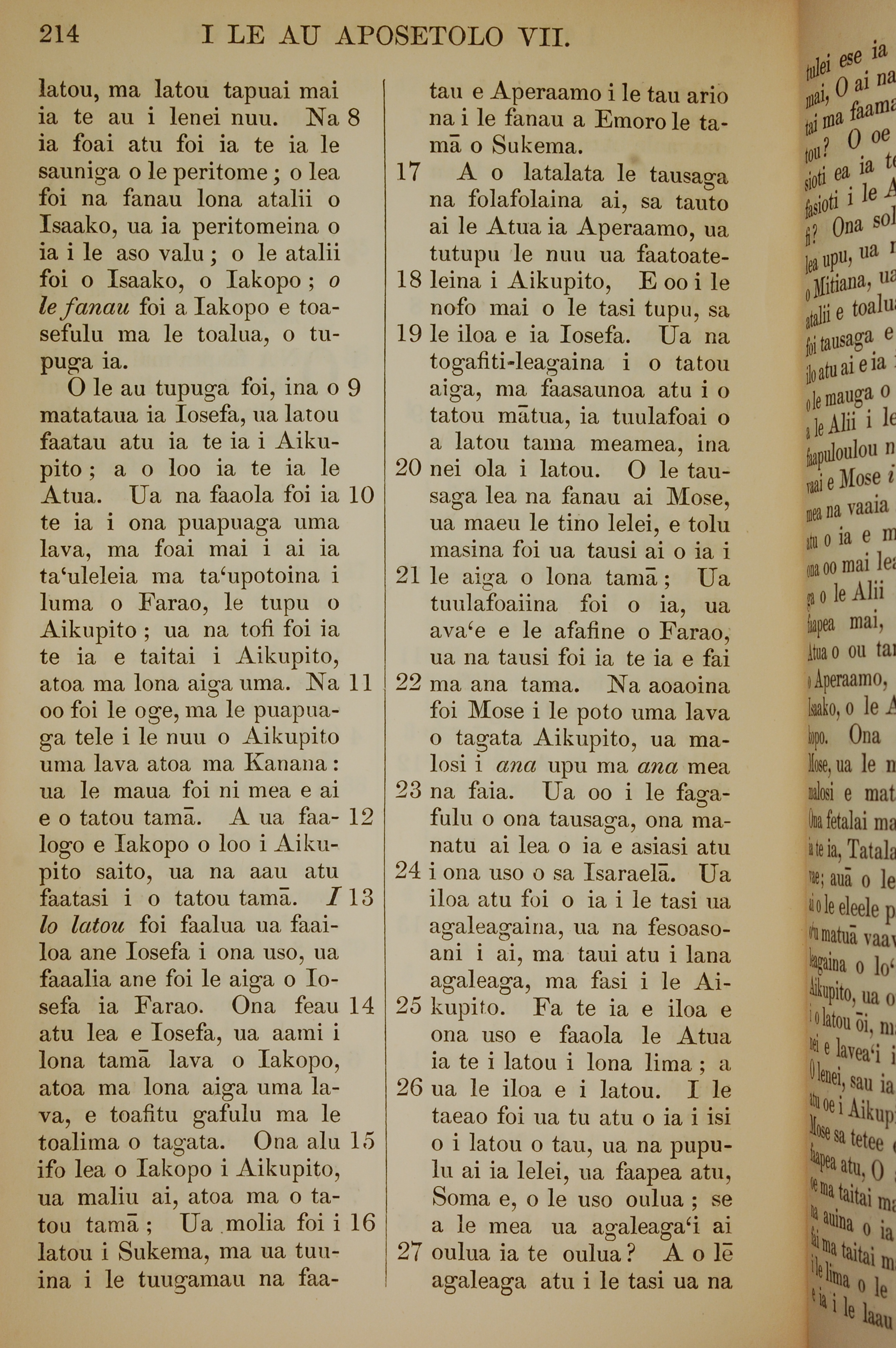 1849年萨摩亚语新约全书 使徒行传 7 章 8 节到 7 章 27 节