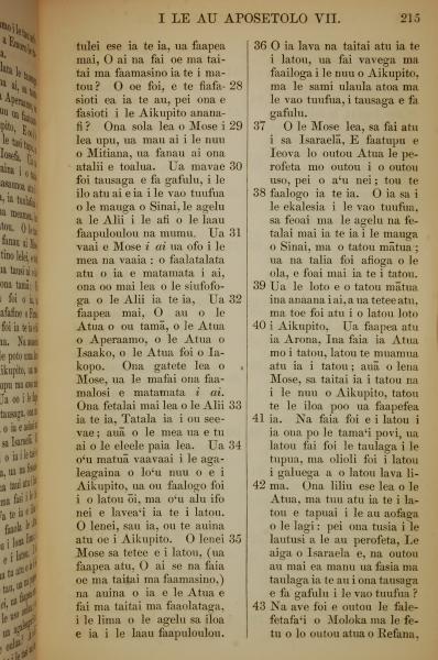 1849年萨摩亚语新约全书 使徒行传 7 章 28 节到 7 章 43 节