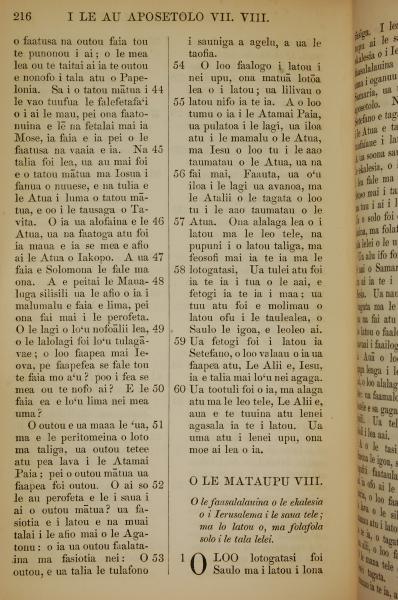 1849年萨摩亚语新约全书 使徒行传 7 章 44 节到 8 章 1 节