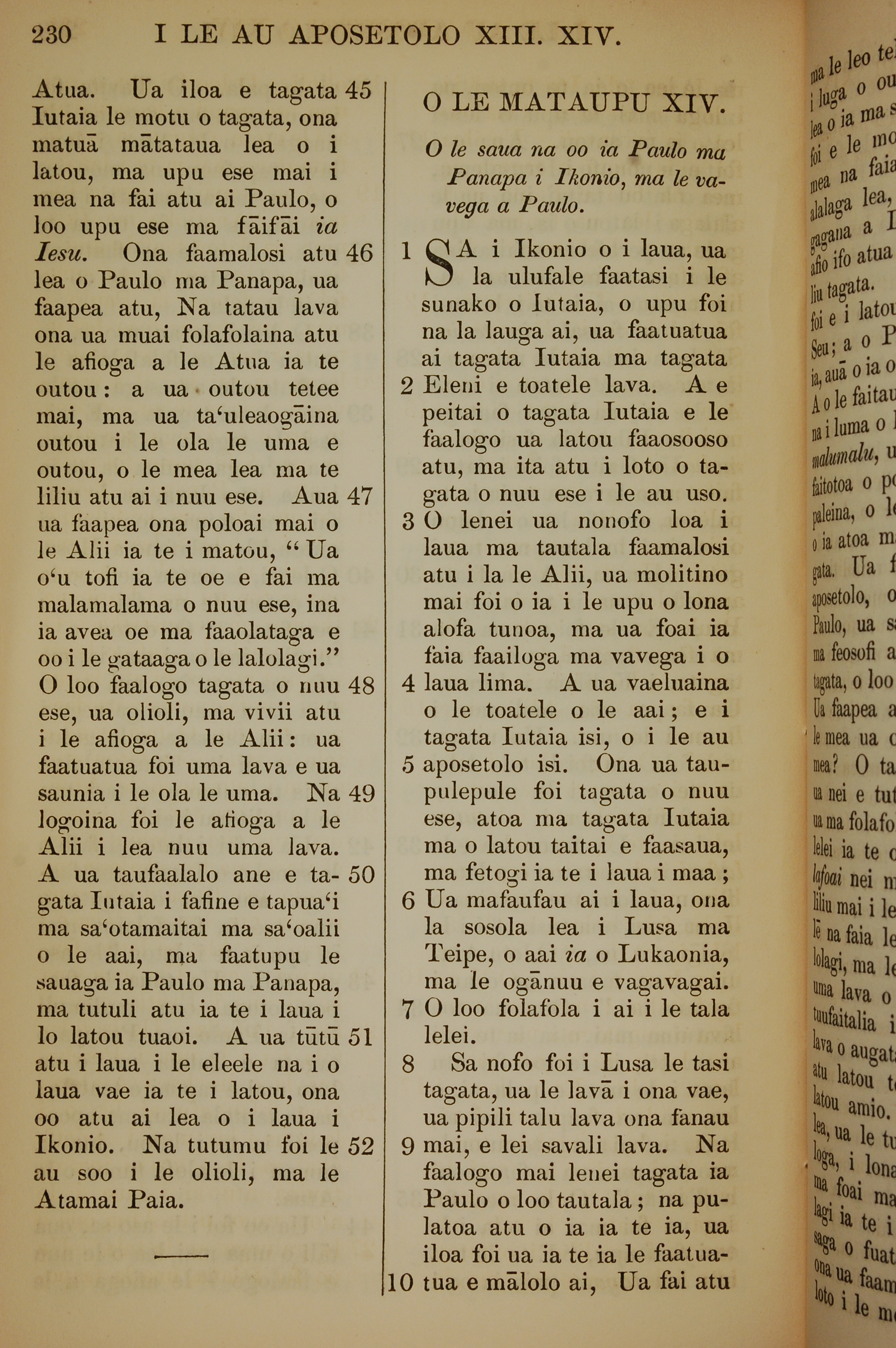 1849年萨摩亚语新约全书 使徒行传 13 章 45 节到 14 章 10 节
