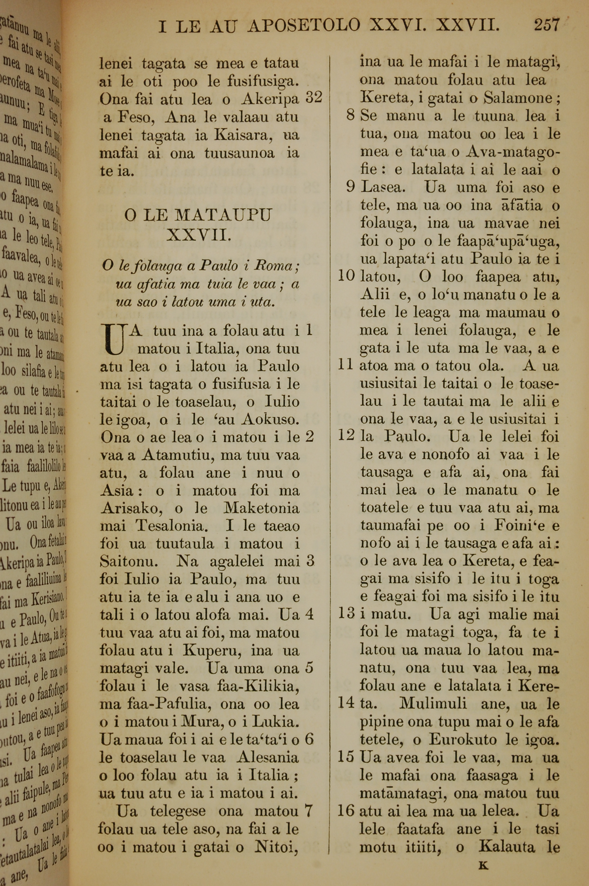 1849年萨摩亚语新约全书 使徒行传 26 章 32 节到 27 章 16 节