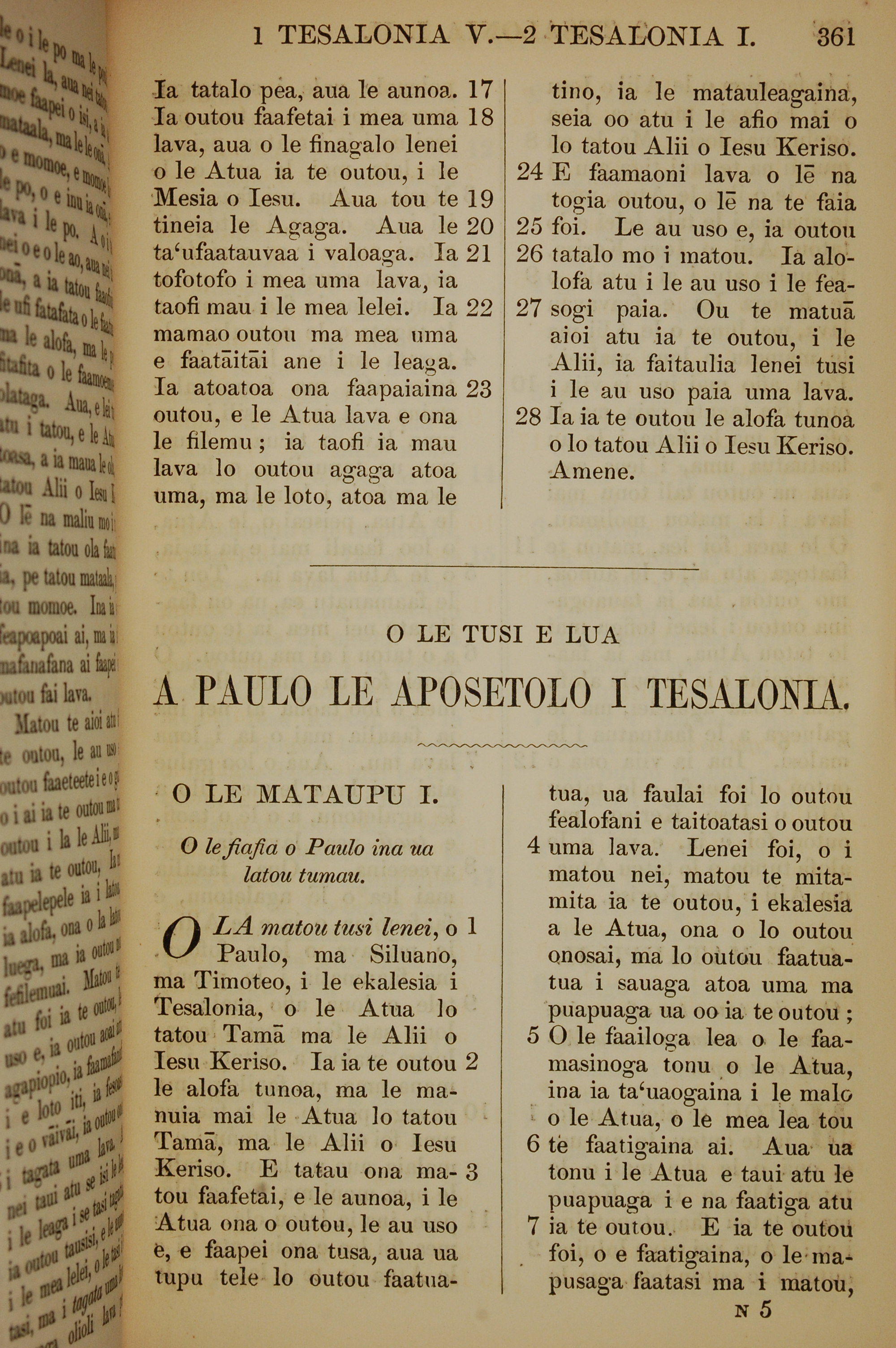1849年萨摩亚语新约全书 帖撒罗尼迦后书 1 章 1 节到 1 章 7 节