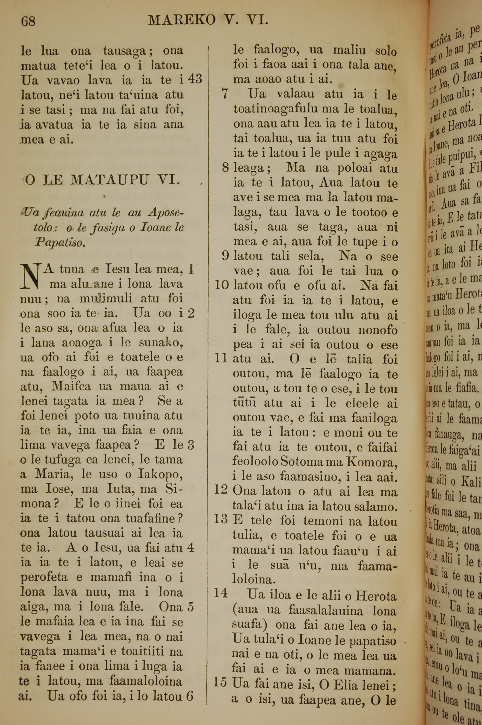 1849年萨摩亚语新约全书 马可福音 5 章 43 节到 6 章 15 节