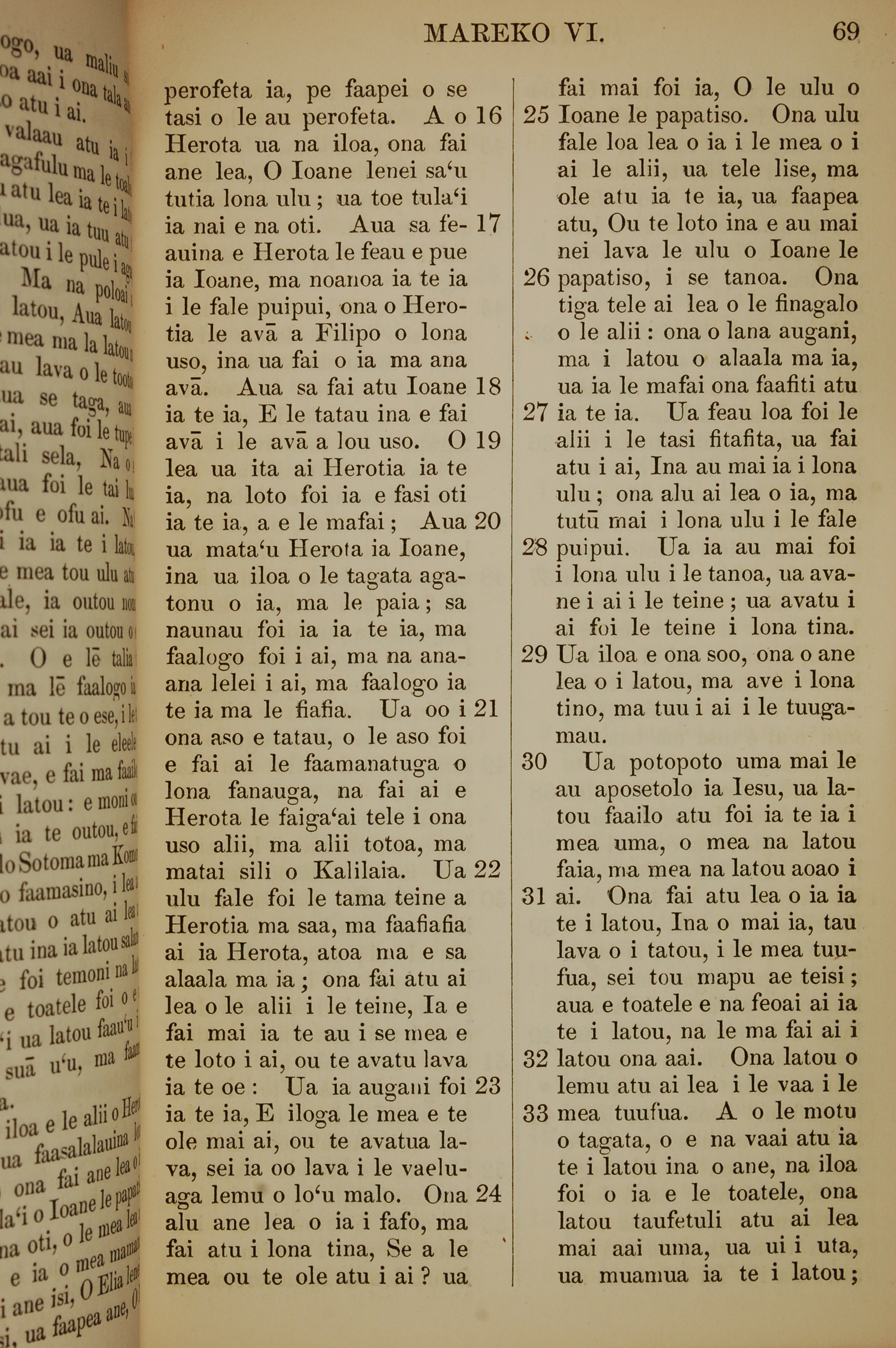 1849年萨摩亚语新约全书 马可福音 6 章 16 节到 6 章 33 节