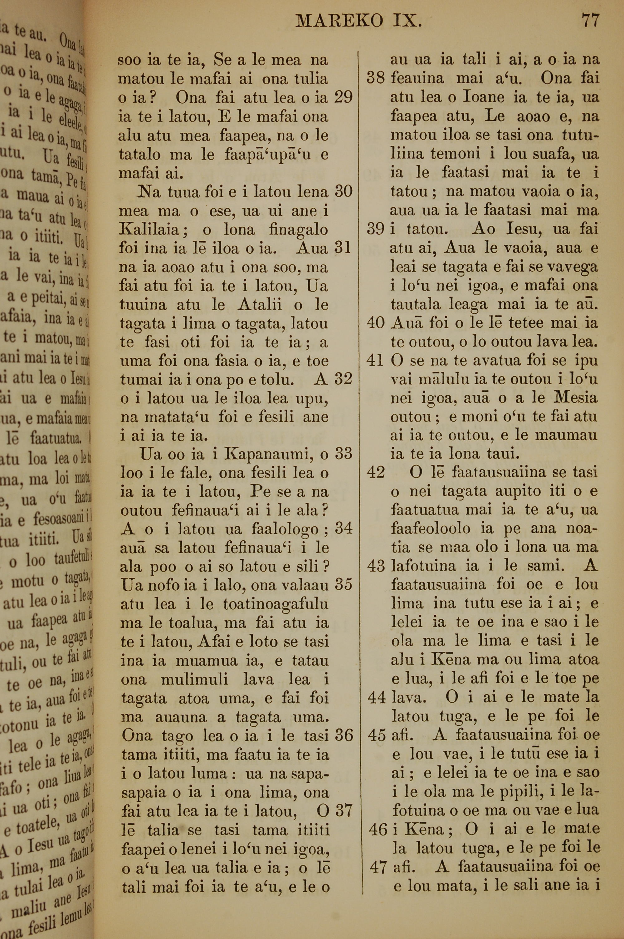 1849年萨摩亚语新约全书 马可福音 9 章 29 节到 9 章 47 节