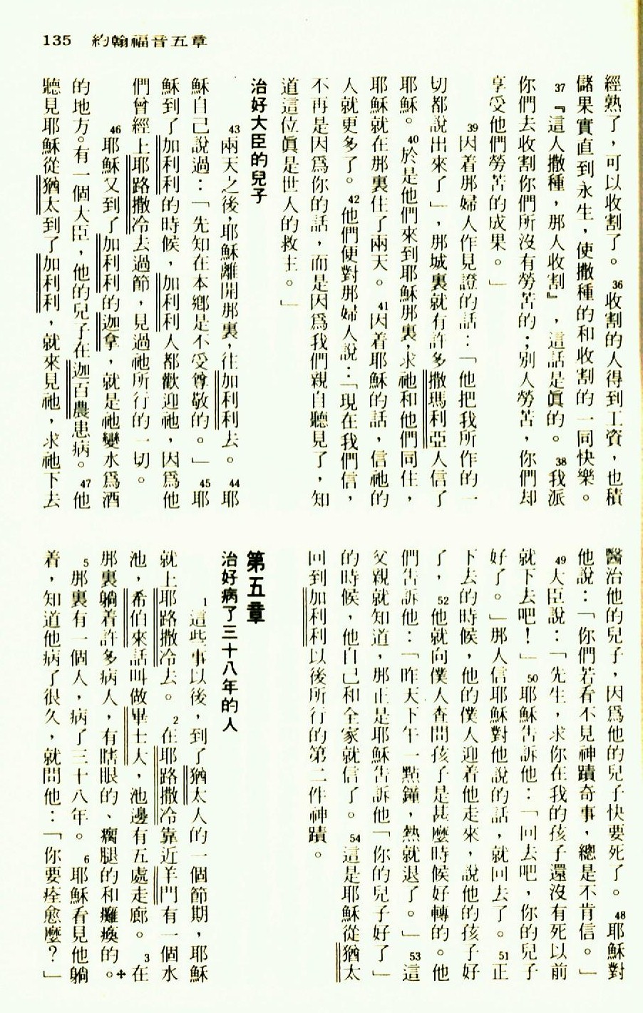 1976年圣经新译本新约 约翰福音 4 章 36 节到 5 章 6 节