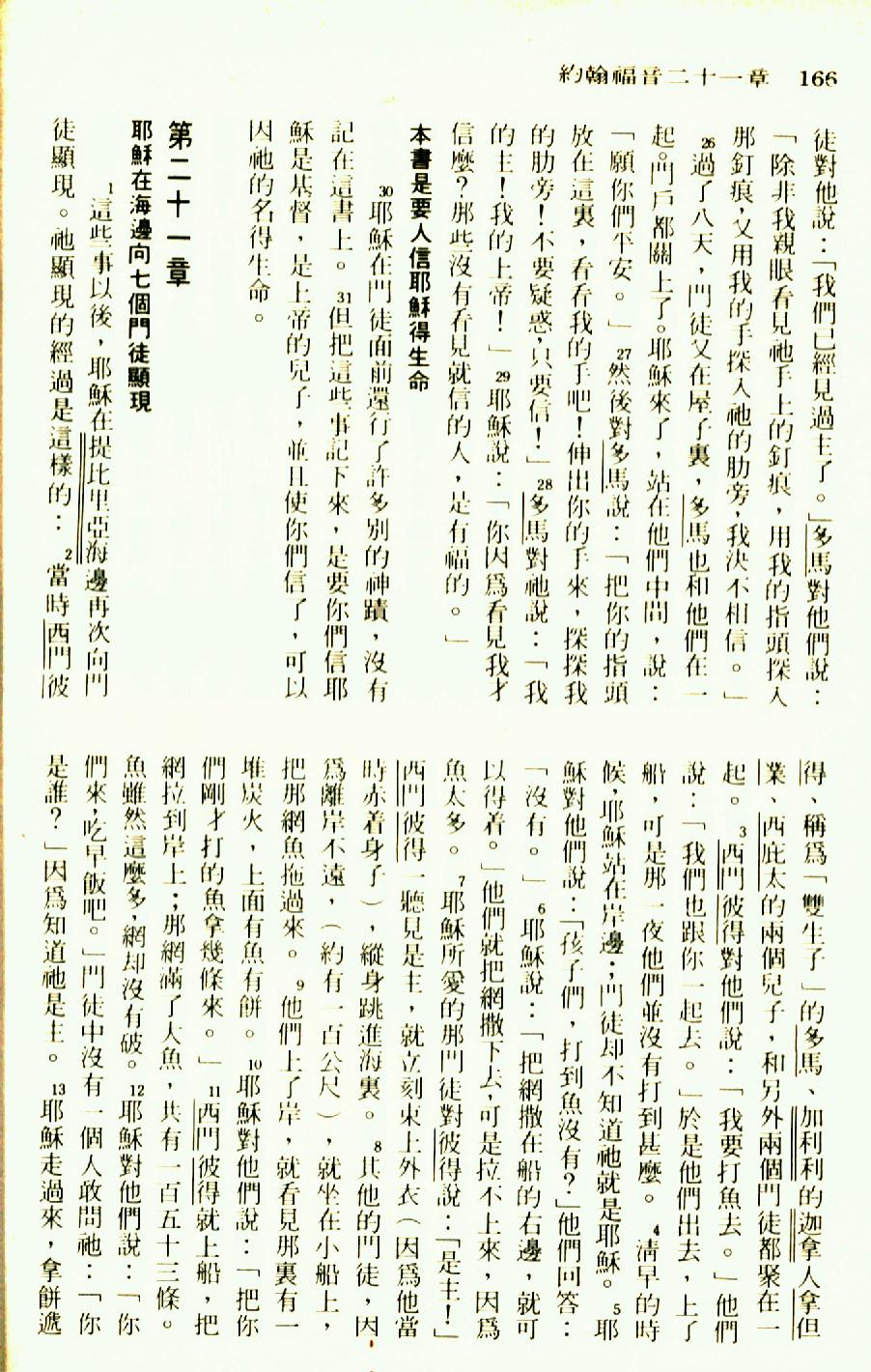 1976年圣经新译本新约 约翰福音 20 章 26 节到 21 章 13 节