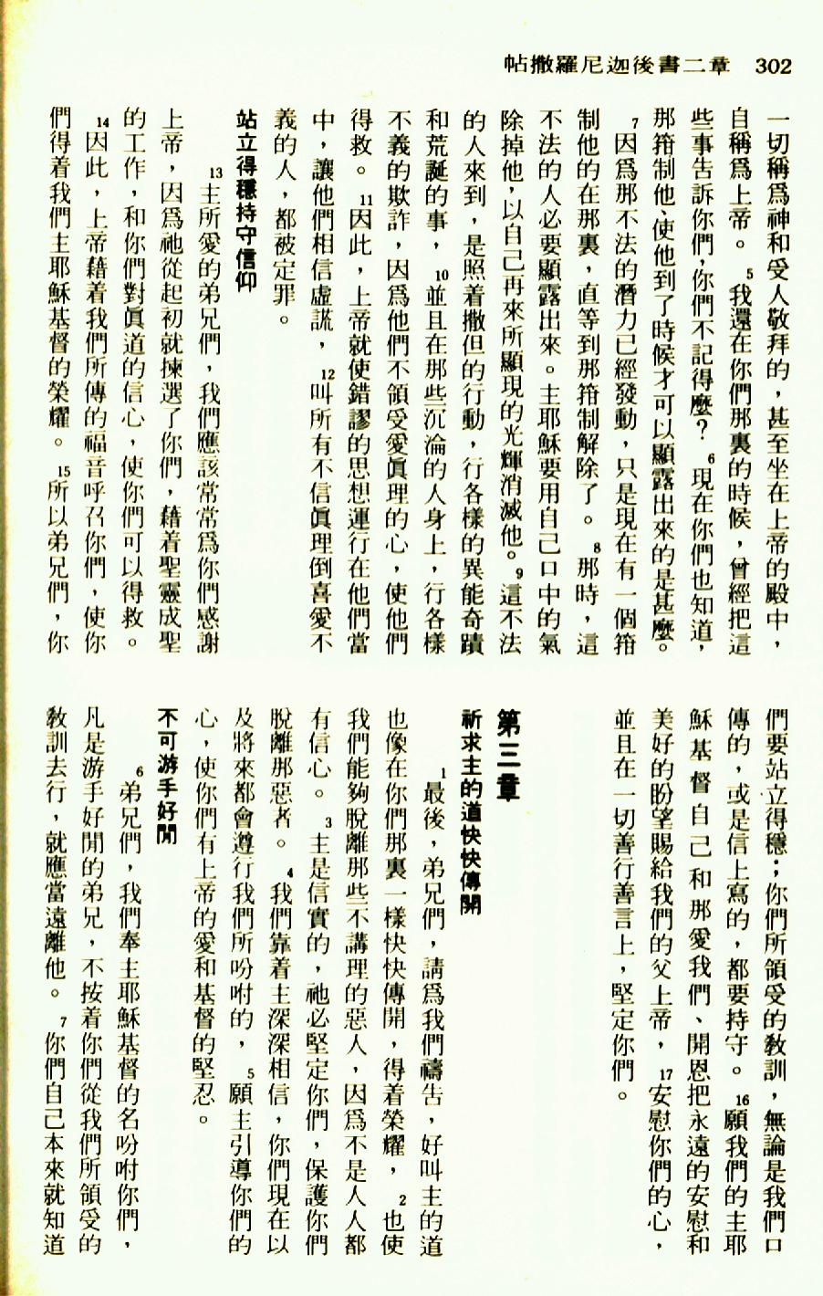 1976年圣经新译本新约 帖撒罗尼迦后书 2 章 5 节到 3 章 7 节