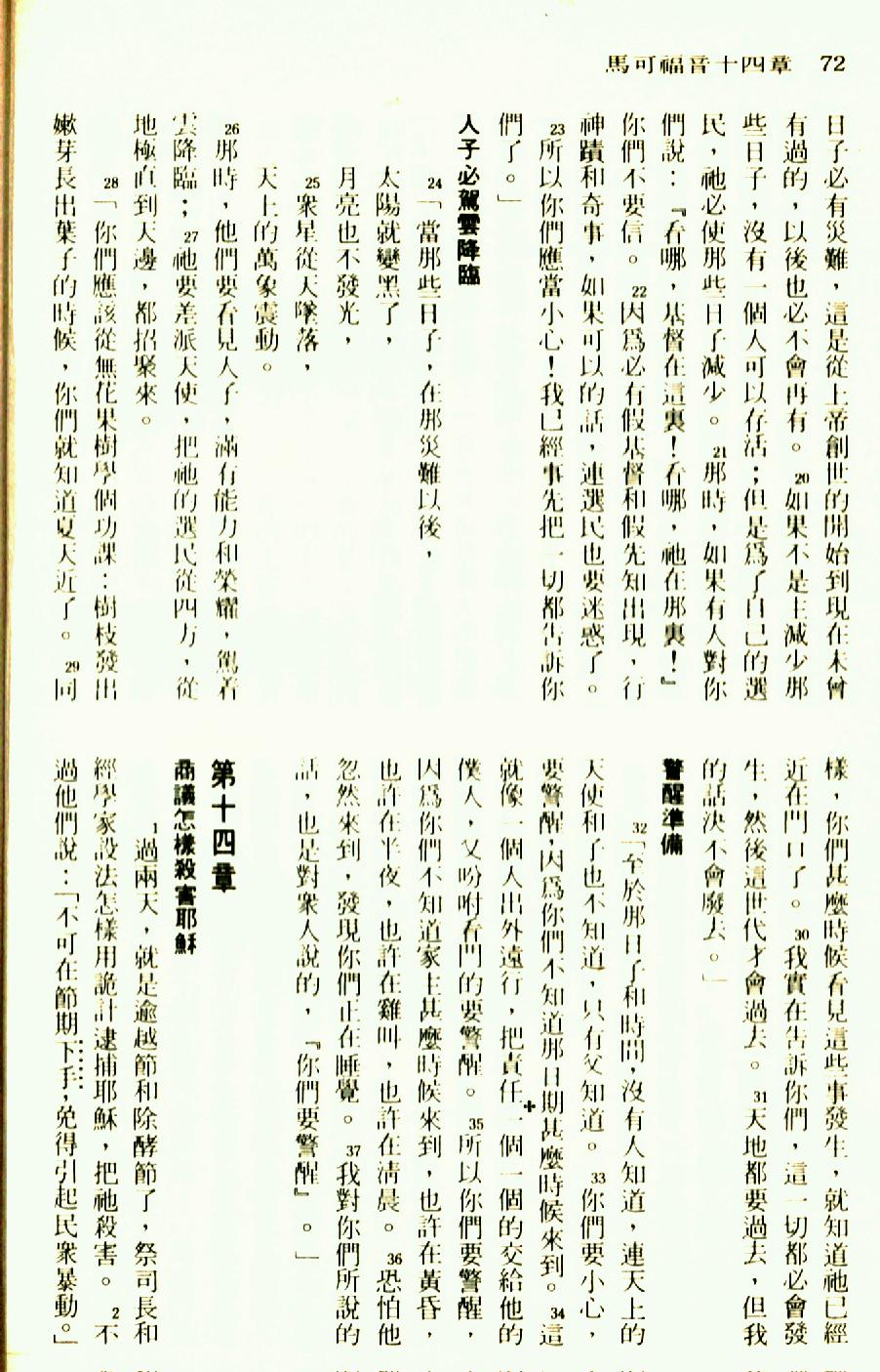1976年圣经新译本新约 马可福音 13 章 20 节到 14 章 2 节