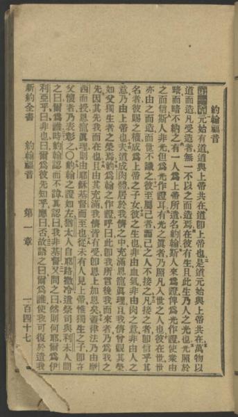1912年浅文理和合本新约 约翰福音 1 章 1 节到 1 章 22 节