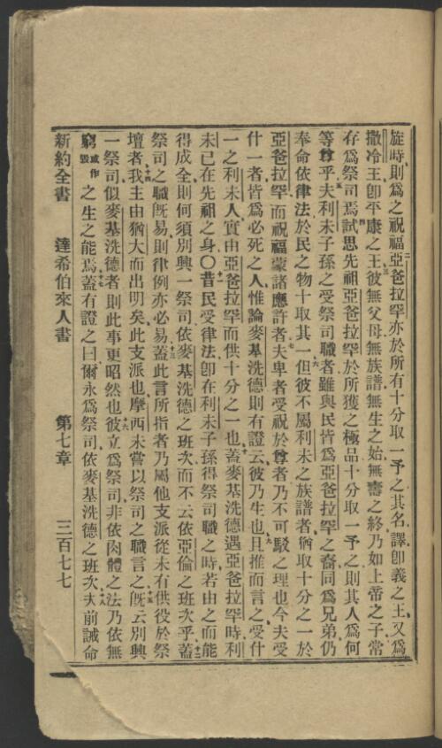 1912年浅文理和合本新约 希伯来书 7 章 2 节到 7 章 18 节