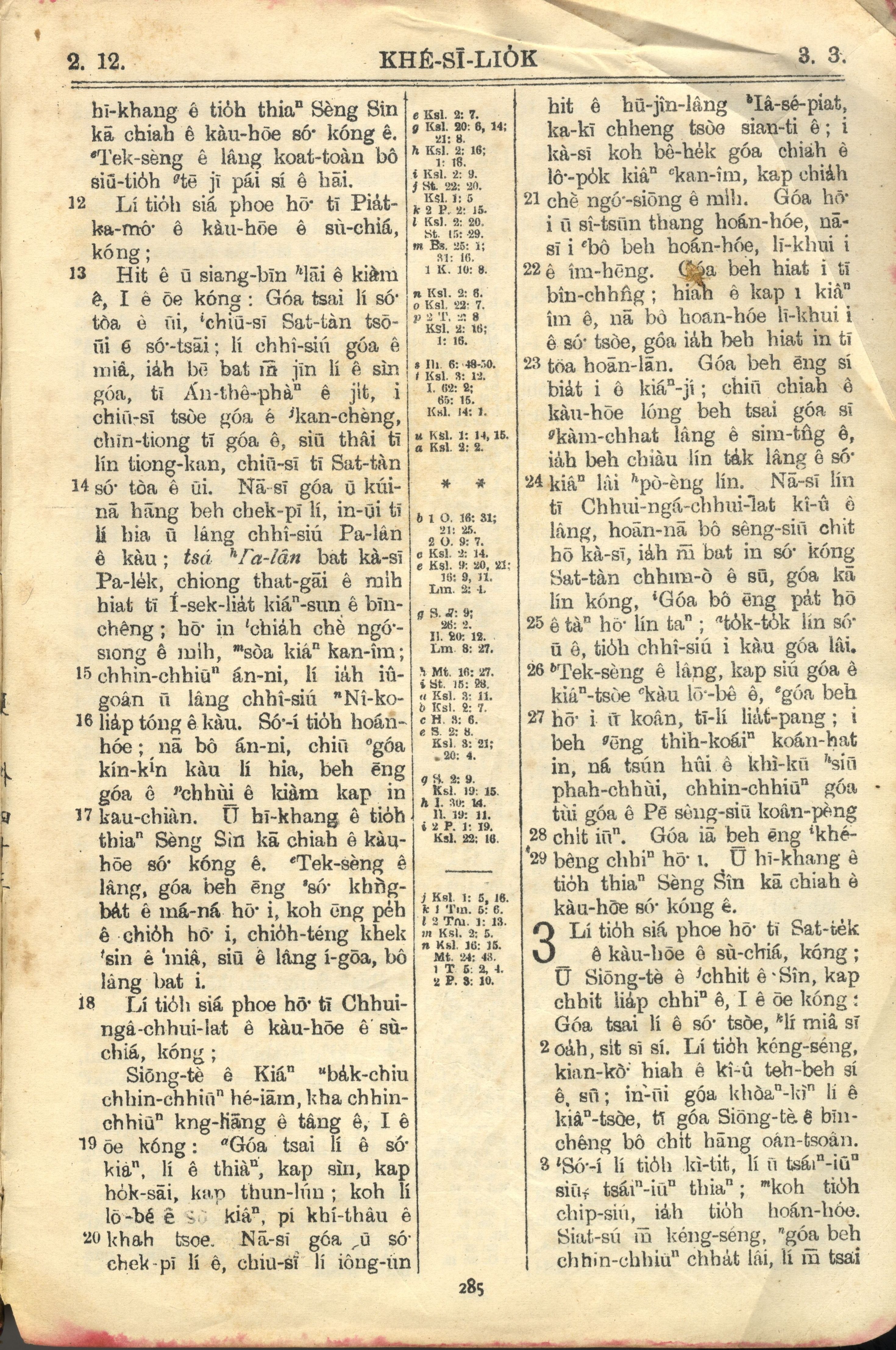 1957年巴克礼全罗台语圣经串珠版 启示录 2 章 12 节到 3 章 3 节